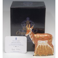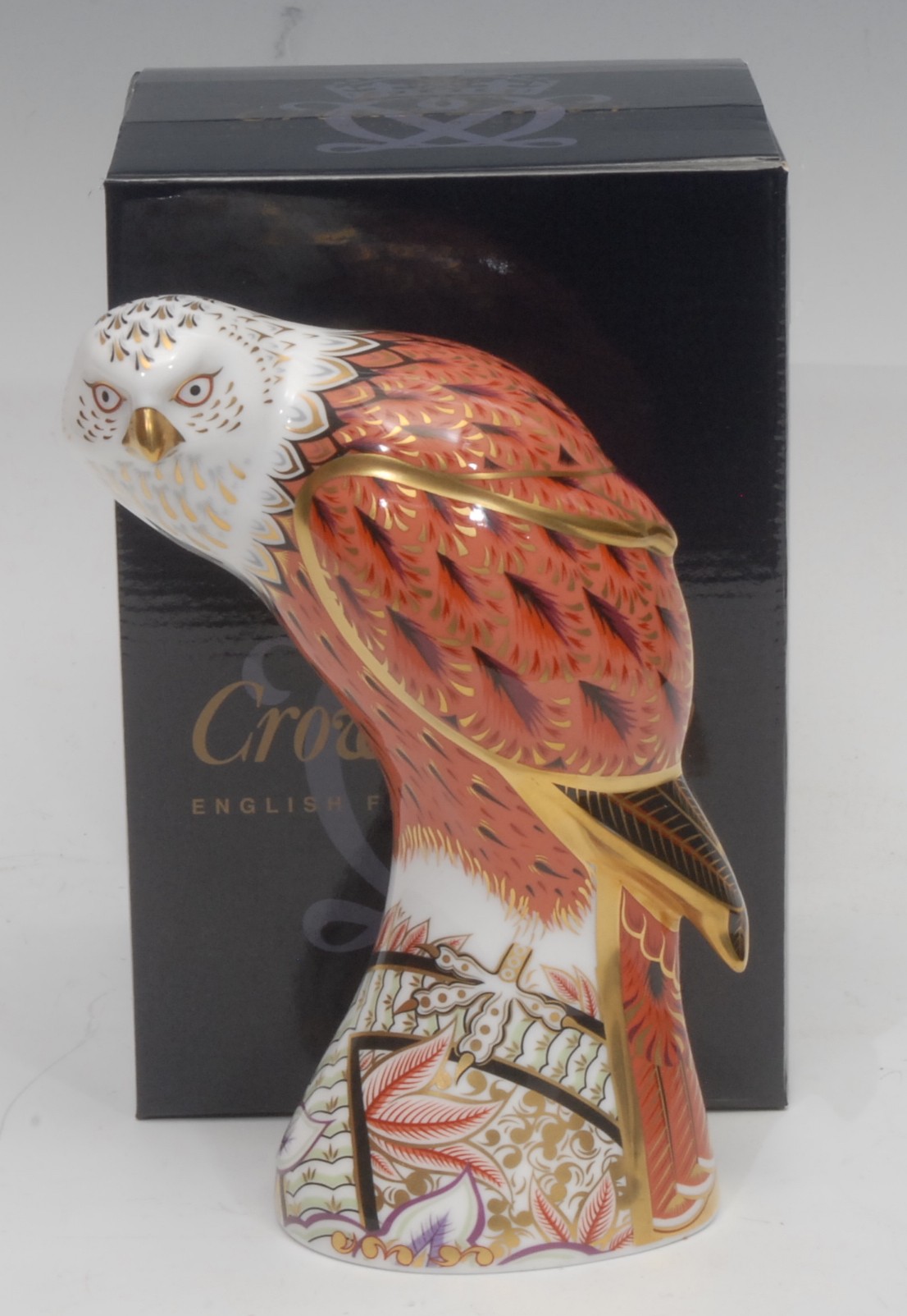 A Royal Crown Derby paperweight, Red Kite, designed by Tien Manh Dinh, gold stopper, 17.5cm high, printed mark in red, signed by the designer in gold, boxed