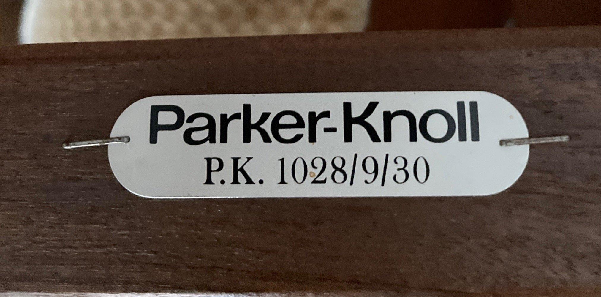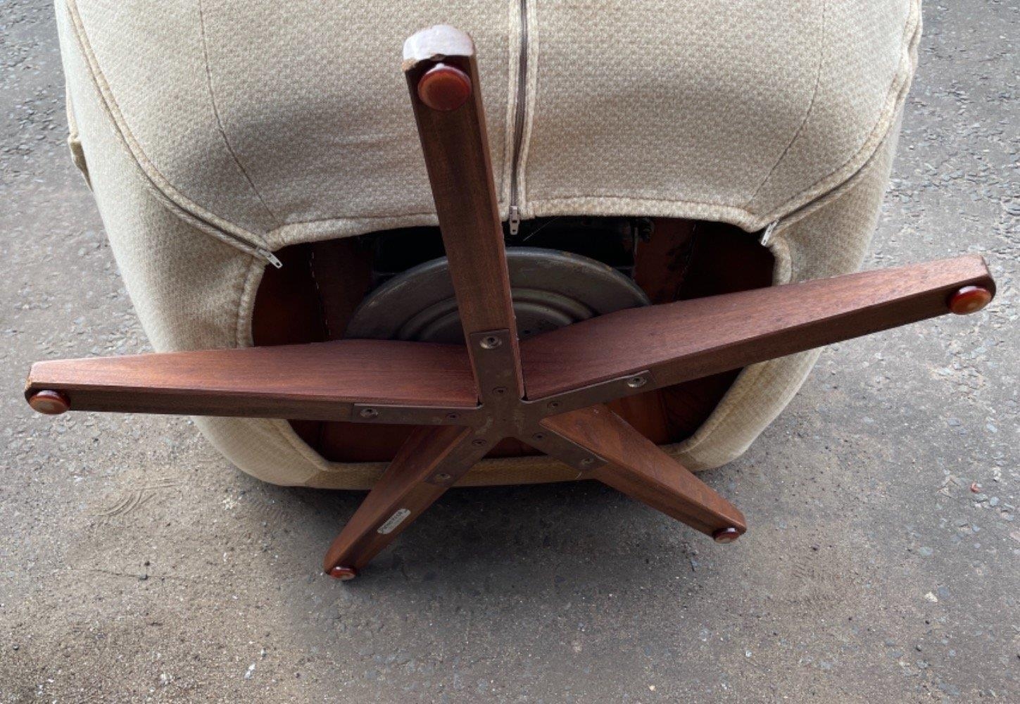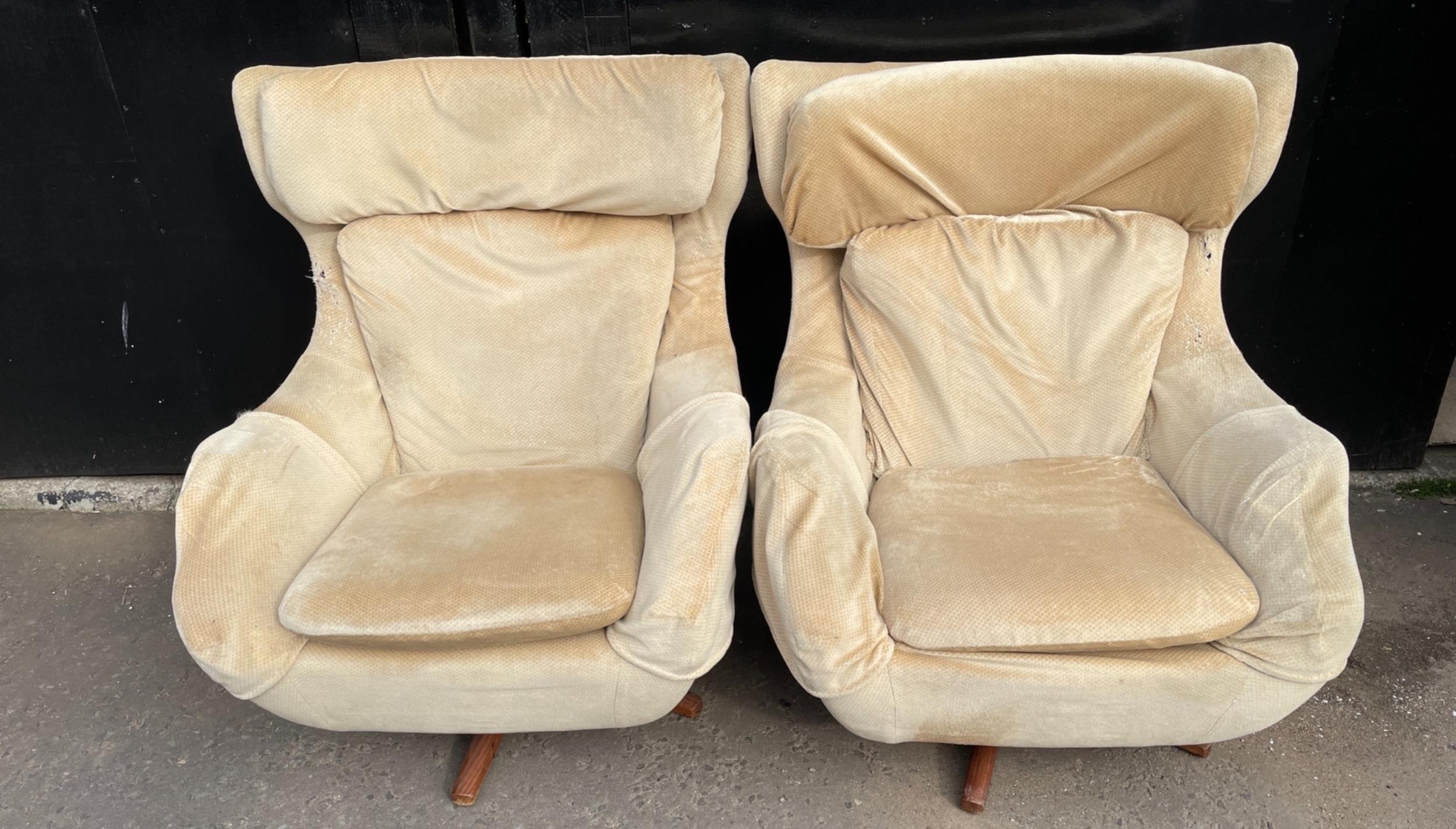 A PAIR of PARKER KNOLL ICONIC 1970's SWIVEL chairs with teak 5 prong feet (may require some recovering)