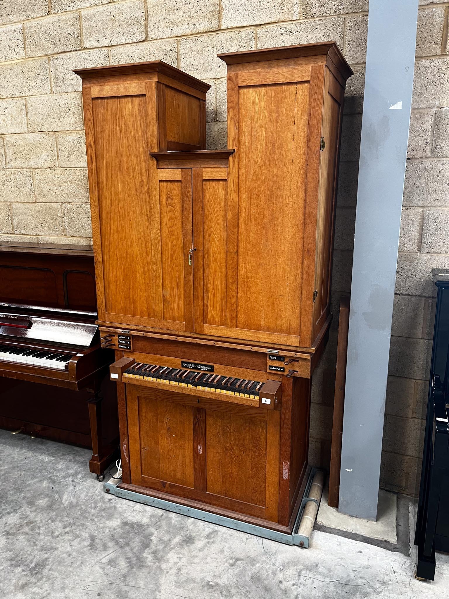 A chamber organ in an oak case. There is VAT on this Lot.