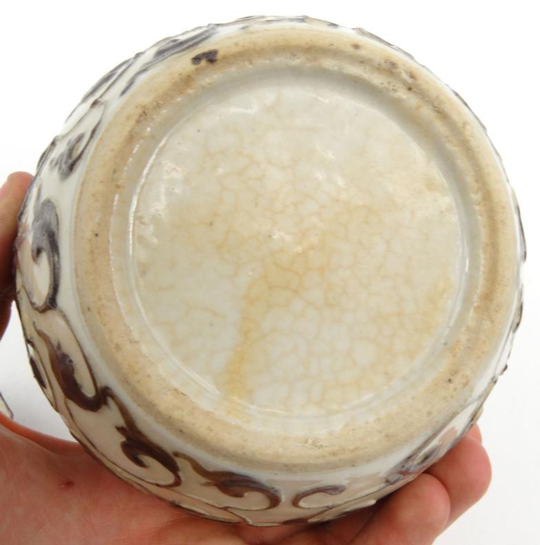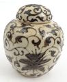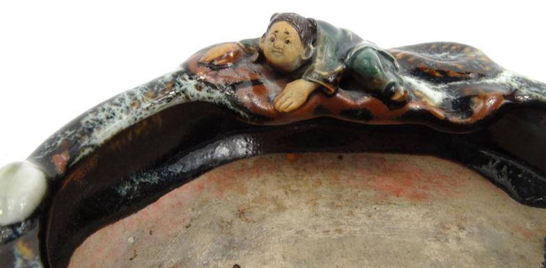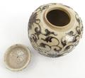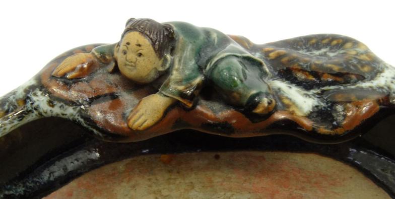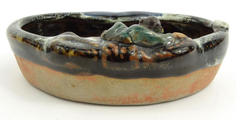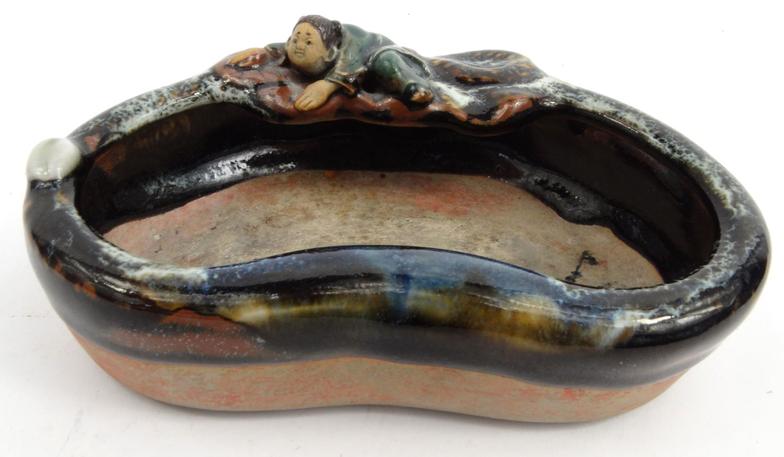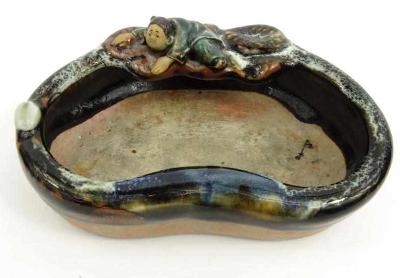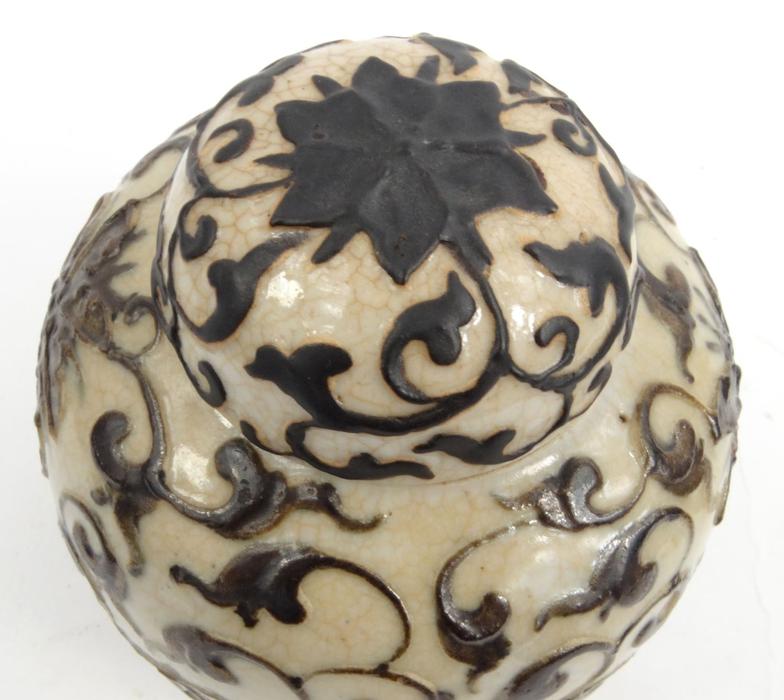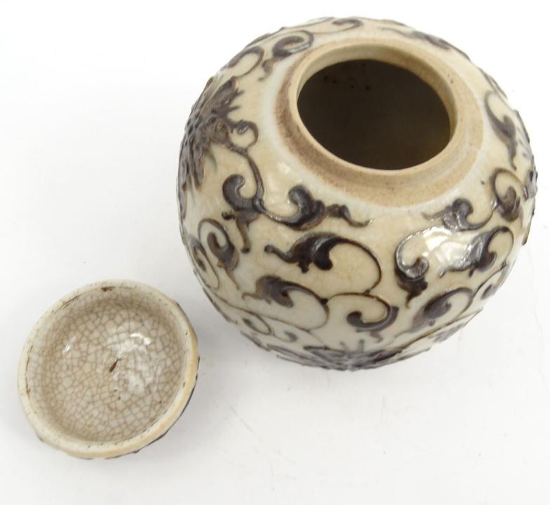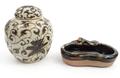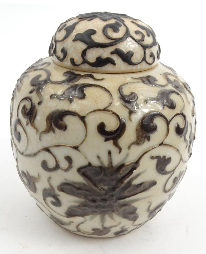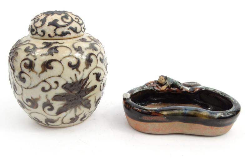 Oriental Chinese pottery sumida gawa pottery brush washer, and an oriental floral crackle glazes jar, largest 15cms tall