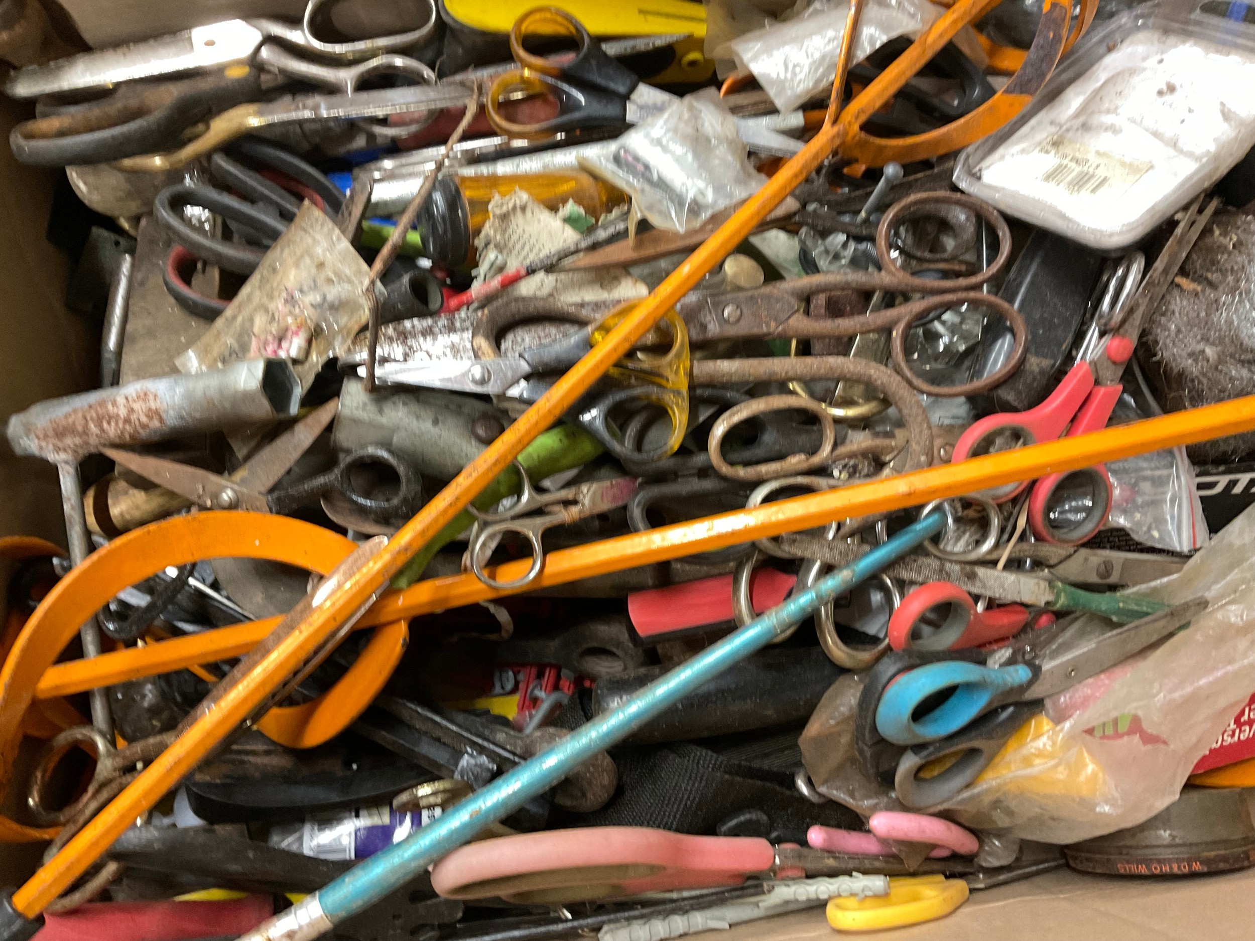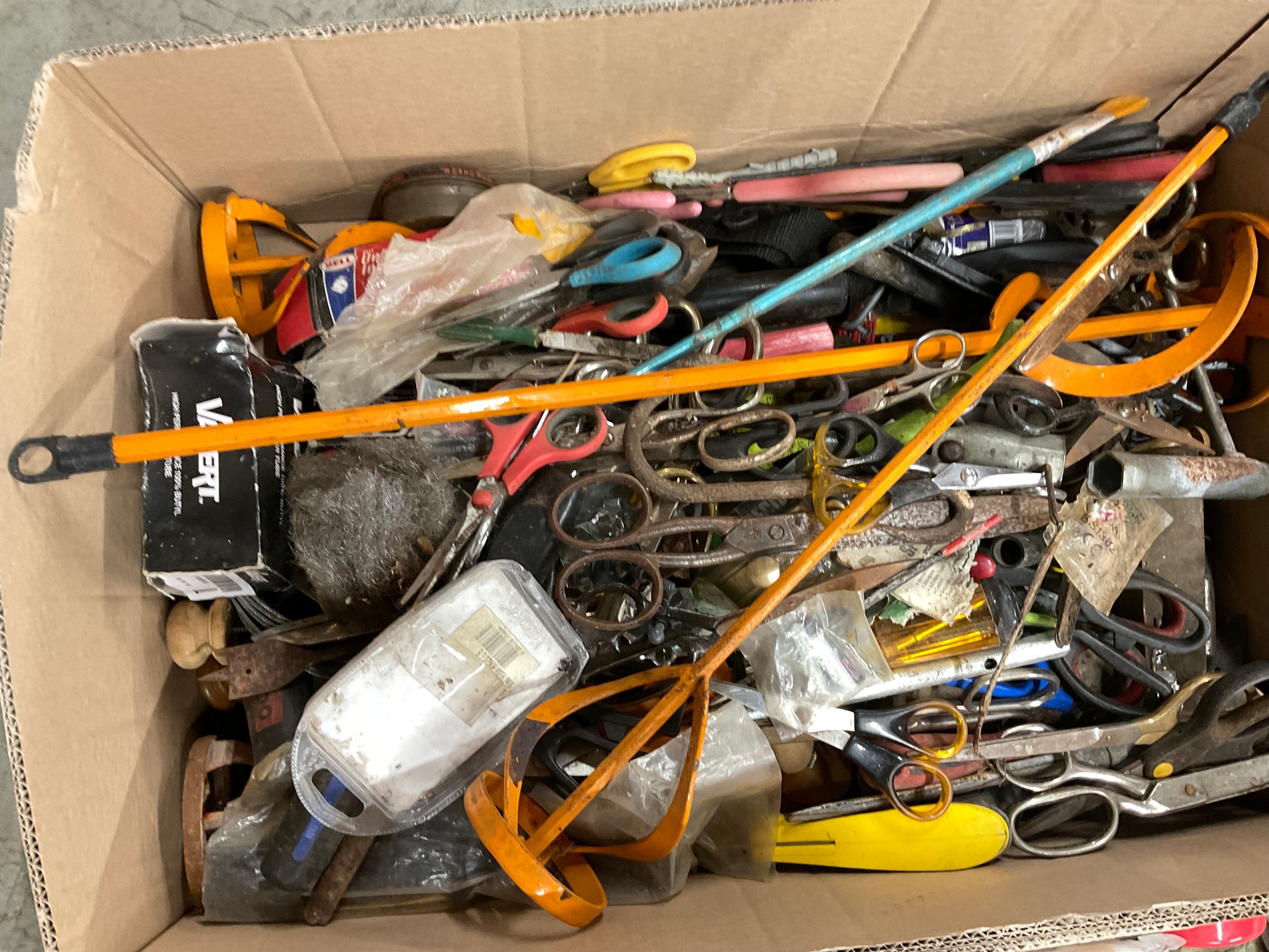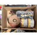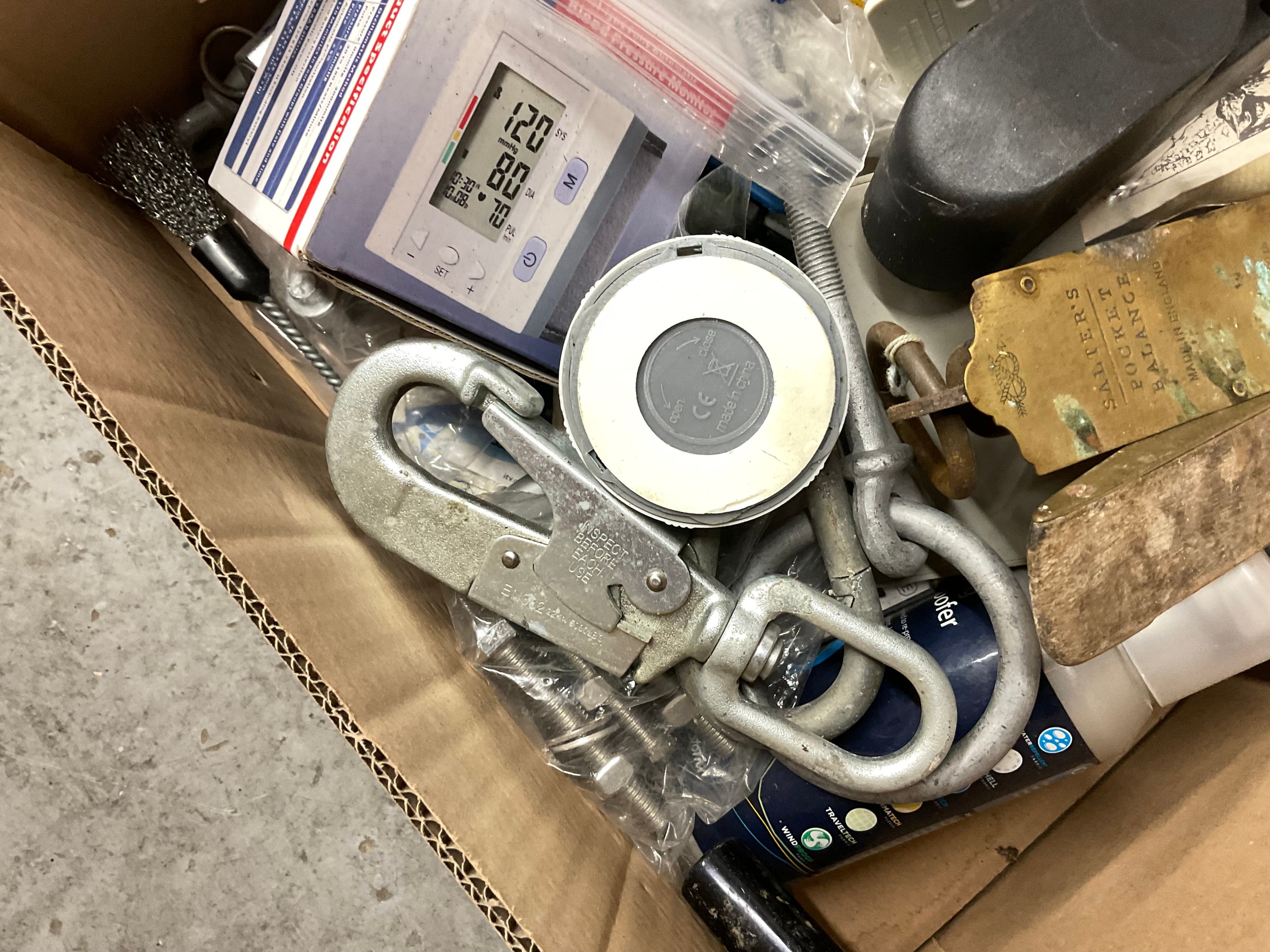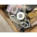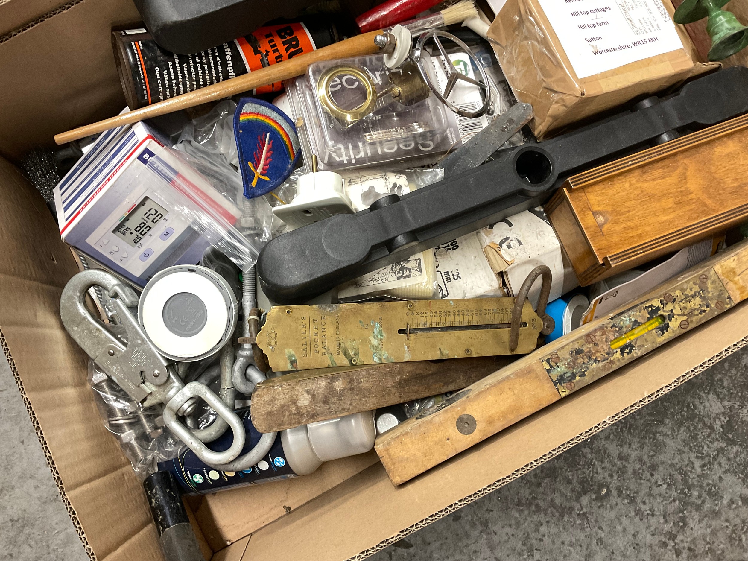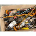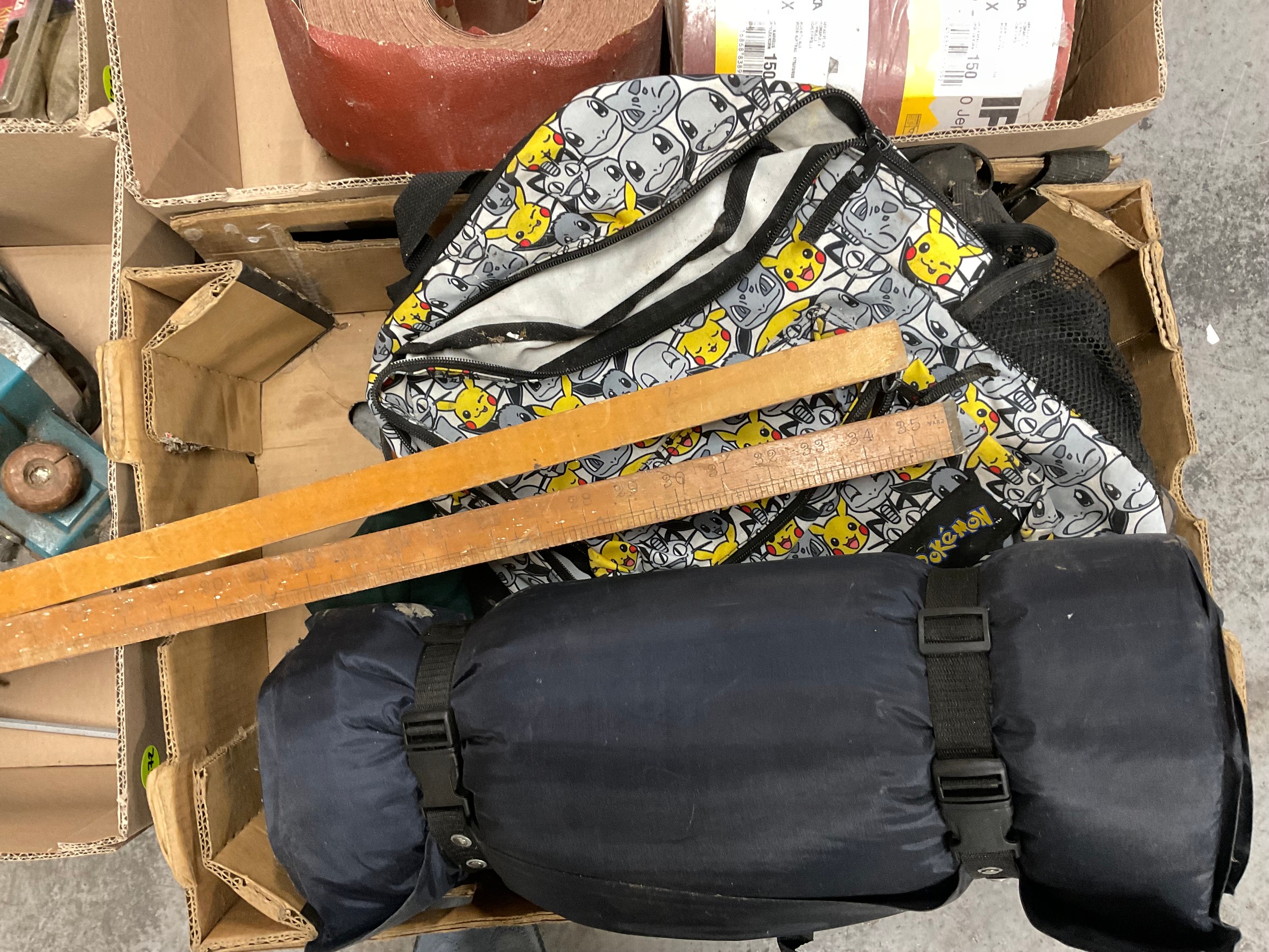 6 BOXES OF WORKSHOP ITEMS TO INCLUDE MAKITA ELECTRIC PLANER, CORDLESS DRILL, HAND TOOLS, HARDWARE ETC