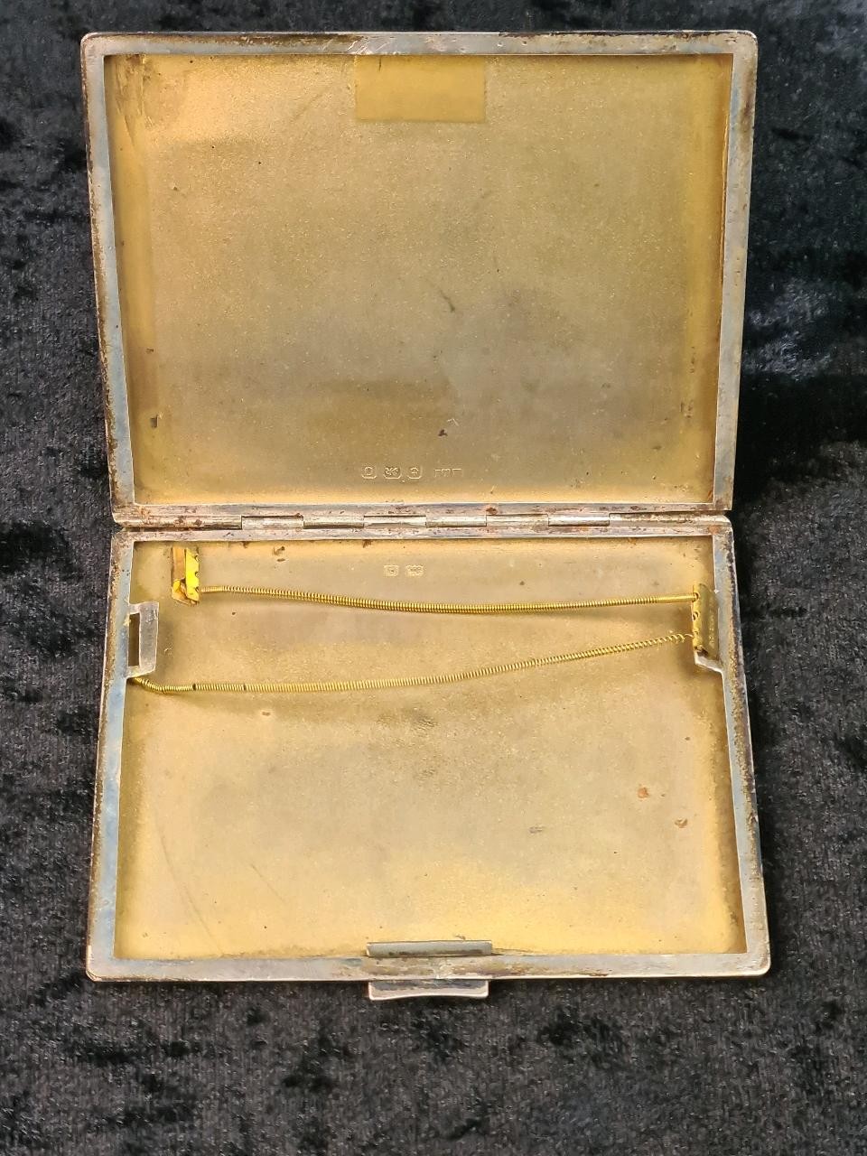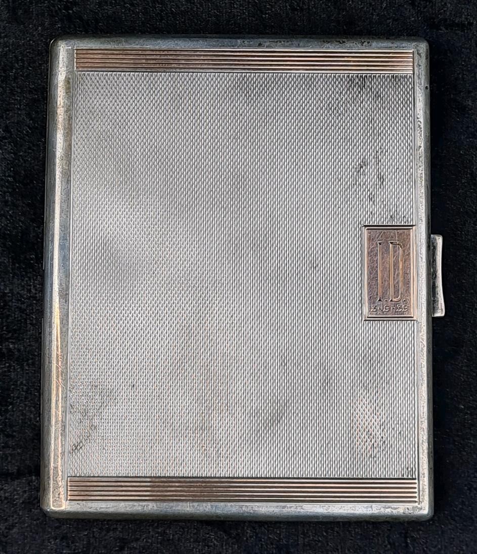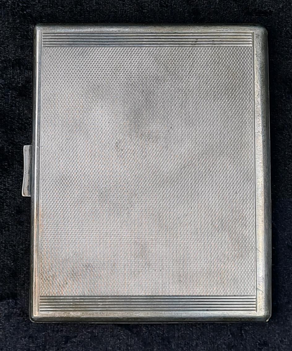 Silver cigarette case with engine turned seasons monogram and date inscription, Birmingham 1938, approx 147g