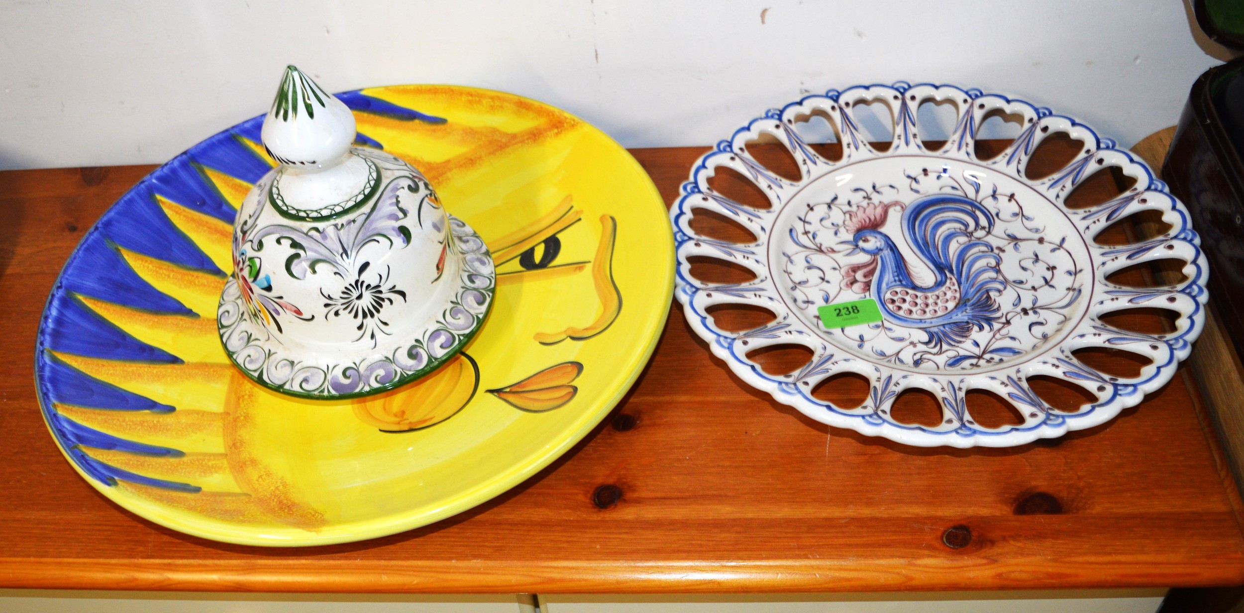 An Italian Large Charger and a Portuguese Hand-Painted Wall-Plate, etc.