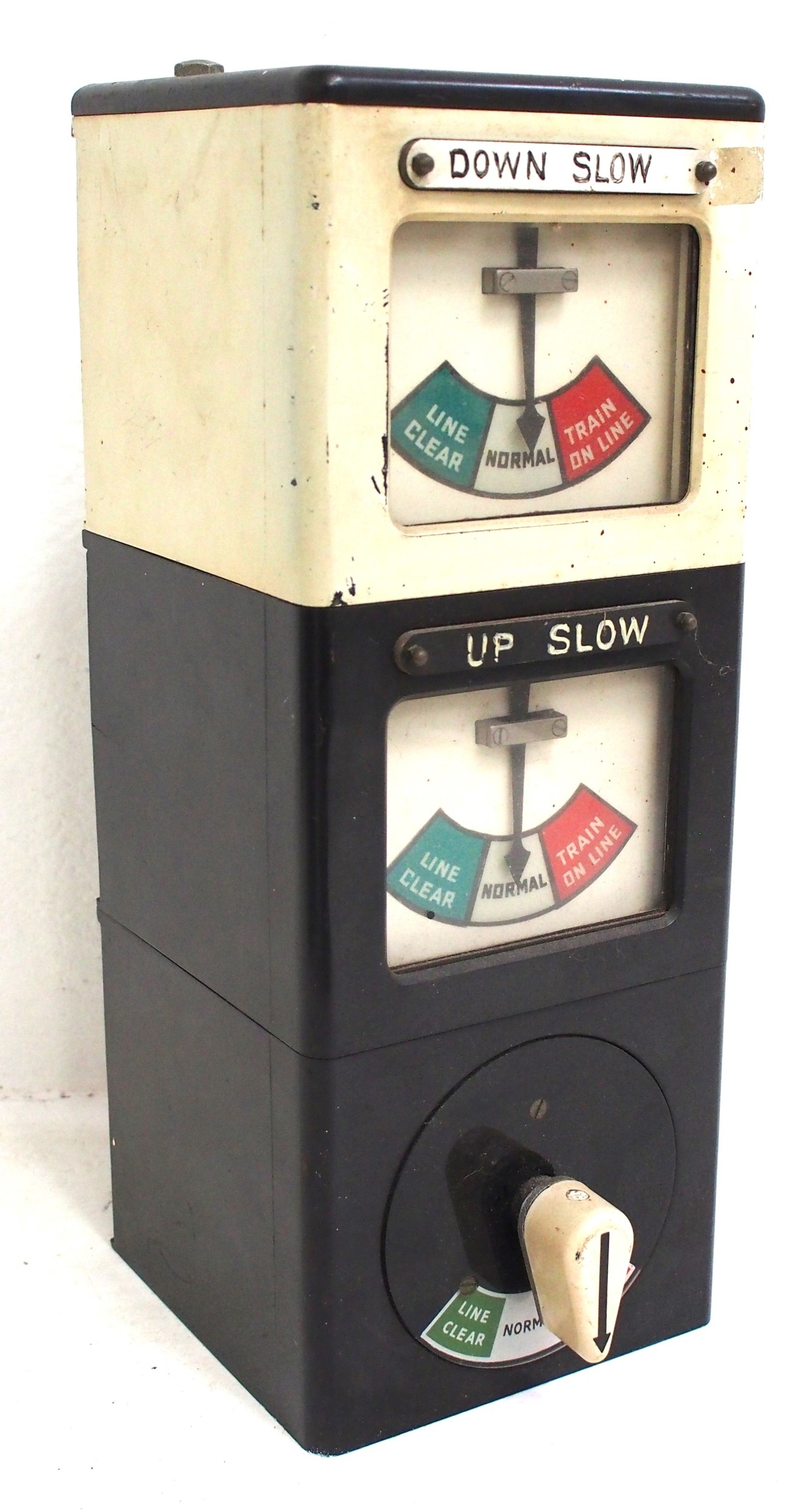 BR plastic signal box block instrument Down & Up Slow, commutator & indicators (one needle sticking) no back plate. (C3) (Dispatch by Mailboxes/Collect from Banbury Depot)