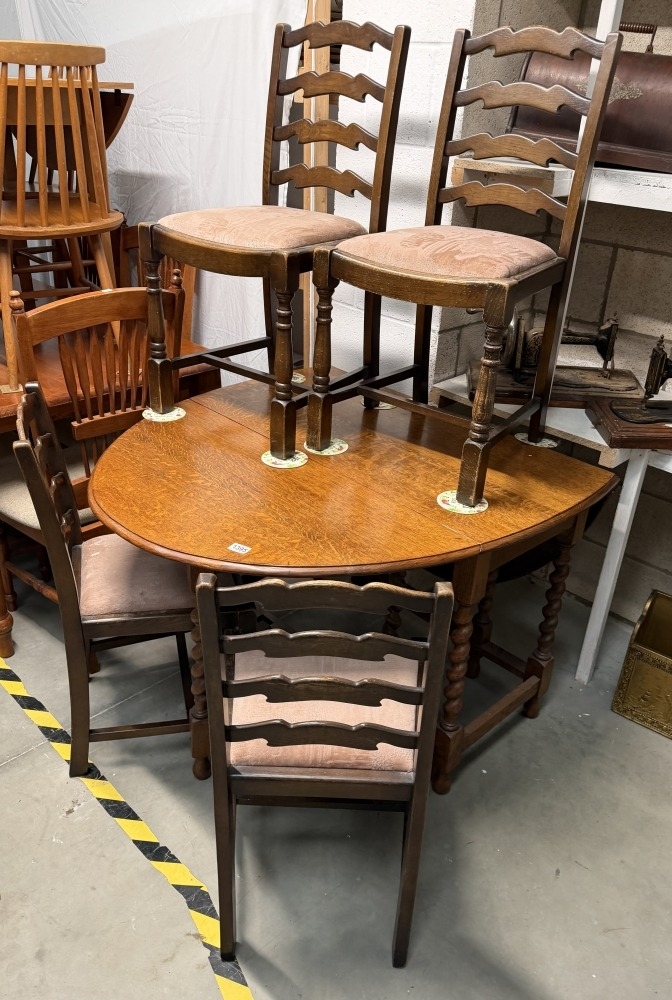 A vintage oak gallery drop leaf table with 4 chairs