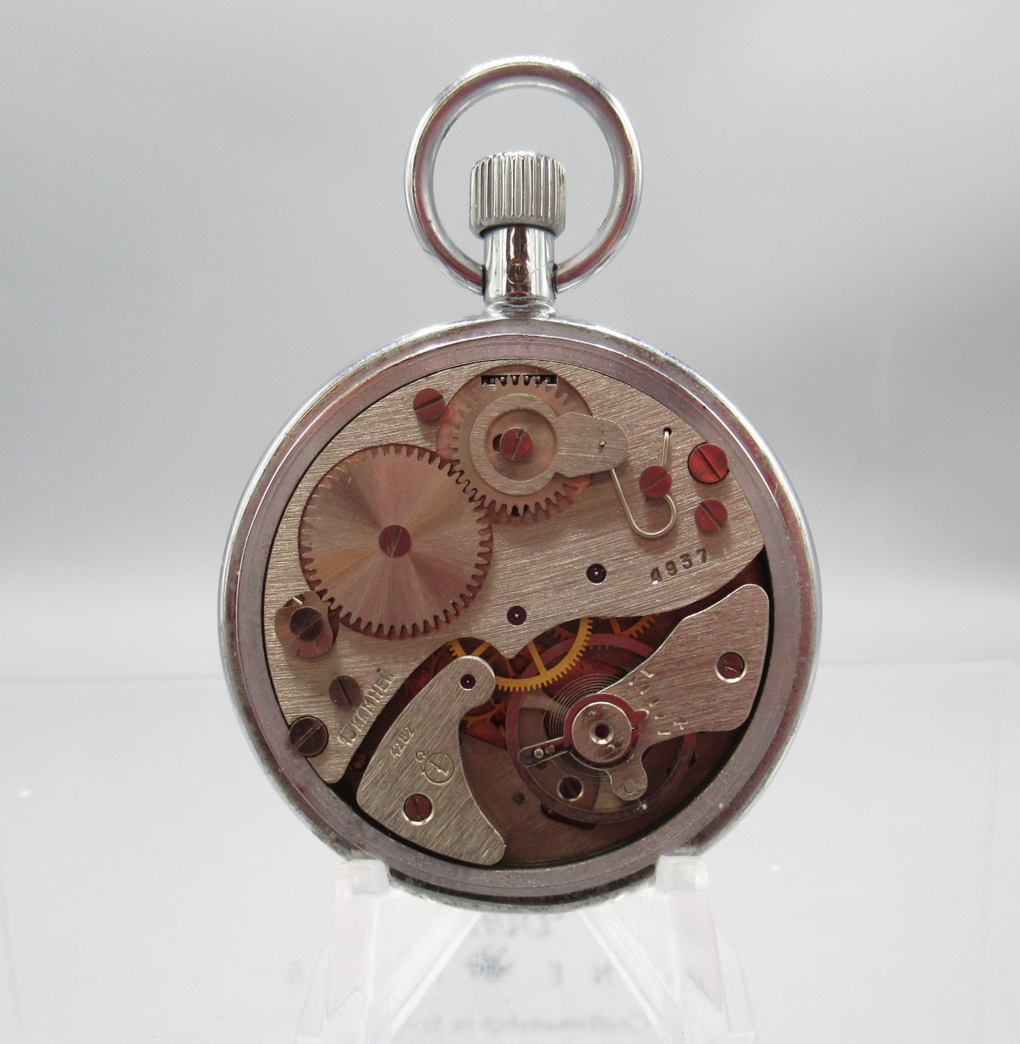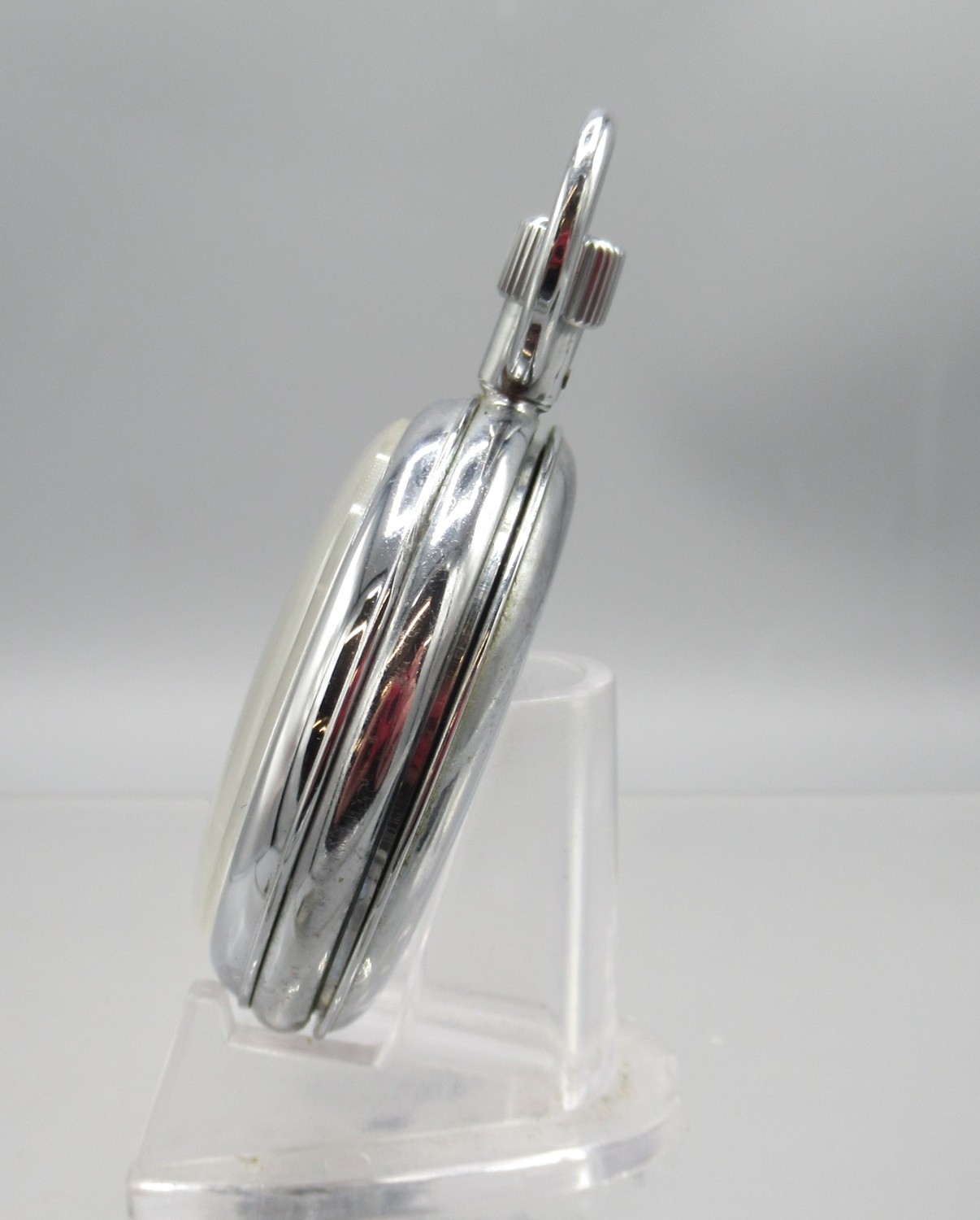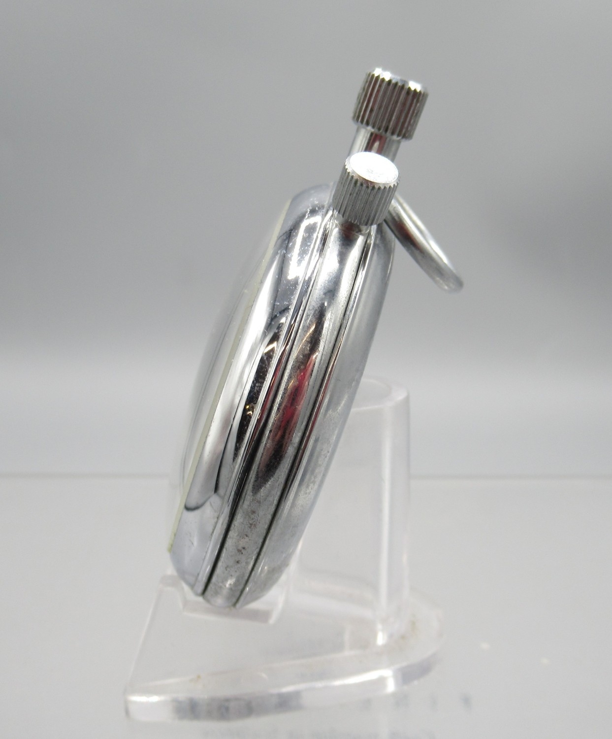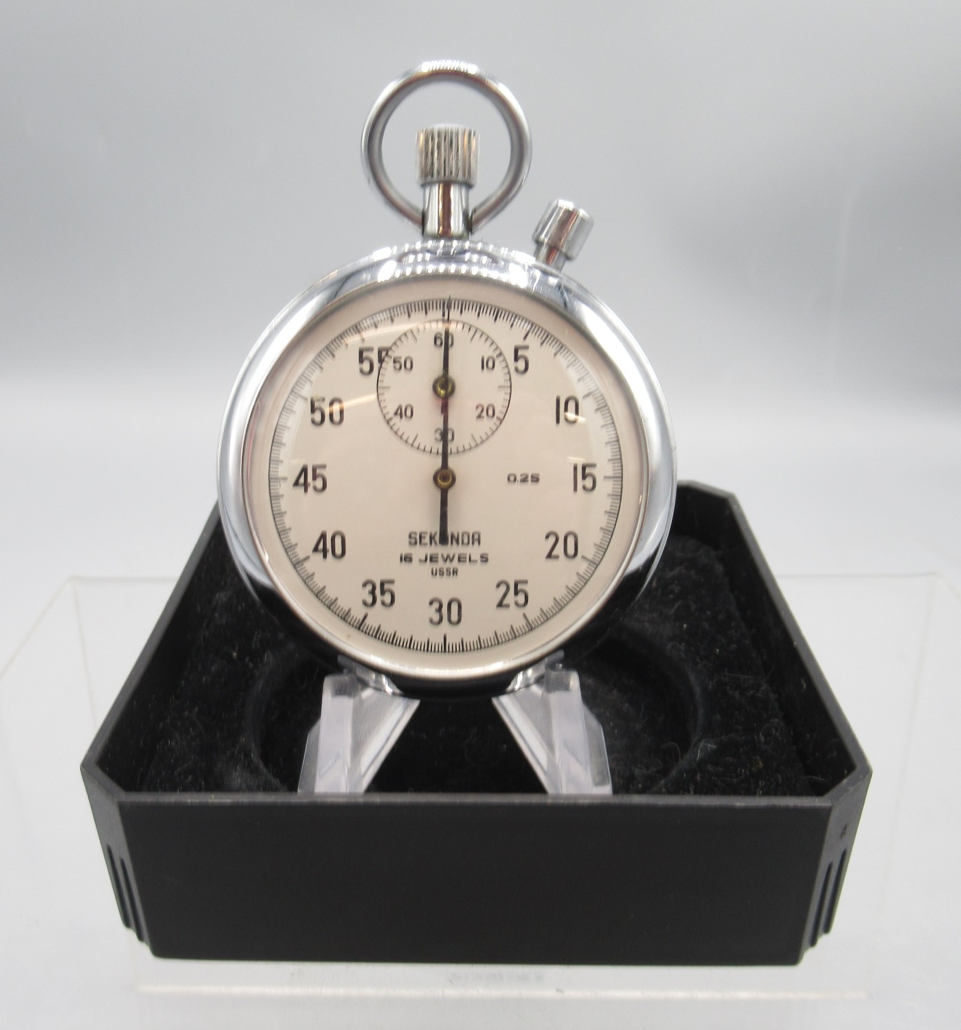 Sekonda chrome stopwatch, signed white dial with 30 minute subsidiary dial, snap on case back, 4282 calibre 15 jewel movement no. 4937, D49.7mm and two other Sekonda chrome stopwatches, D54.8mm
