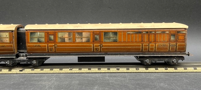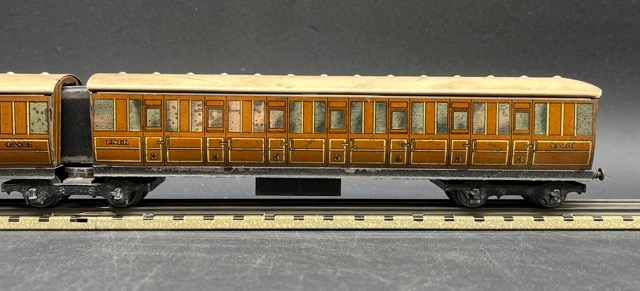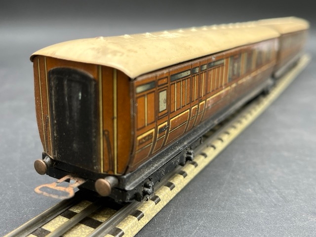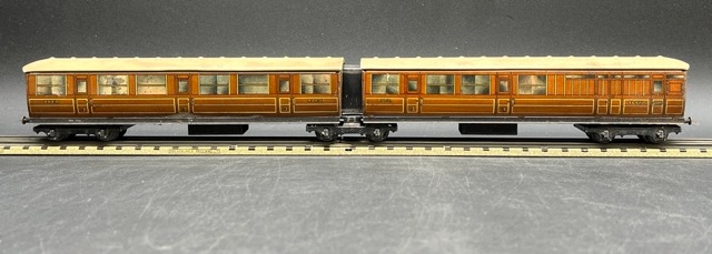 Articulated LNER Teak coaches Guard/3rd 45402 and 3rd 45401 in original Fair condition