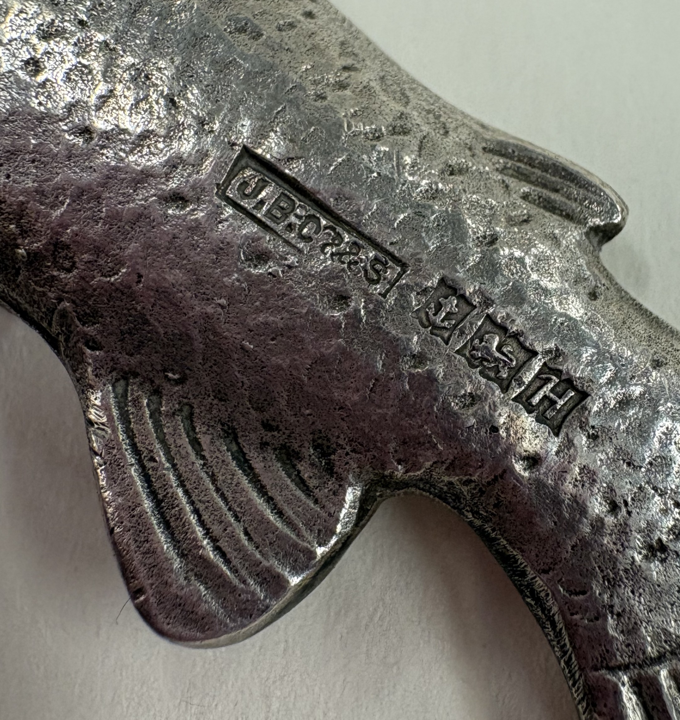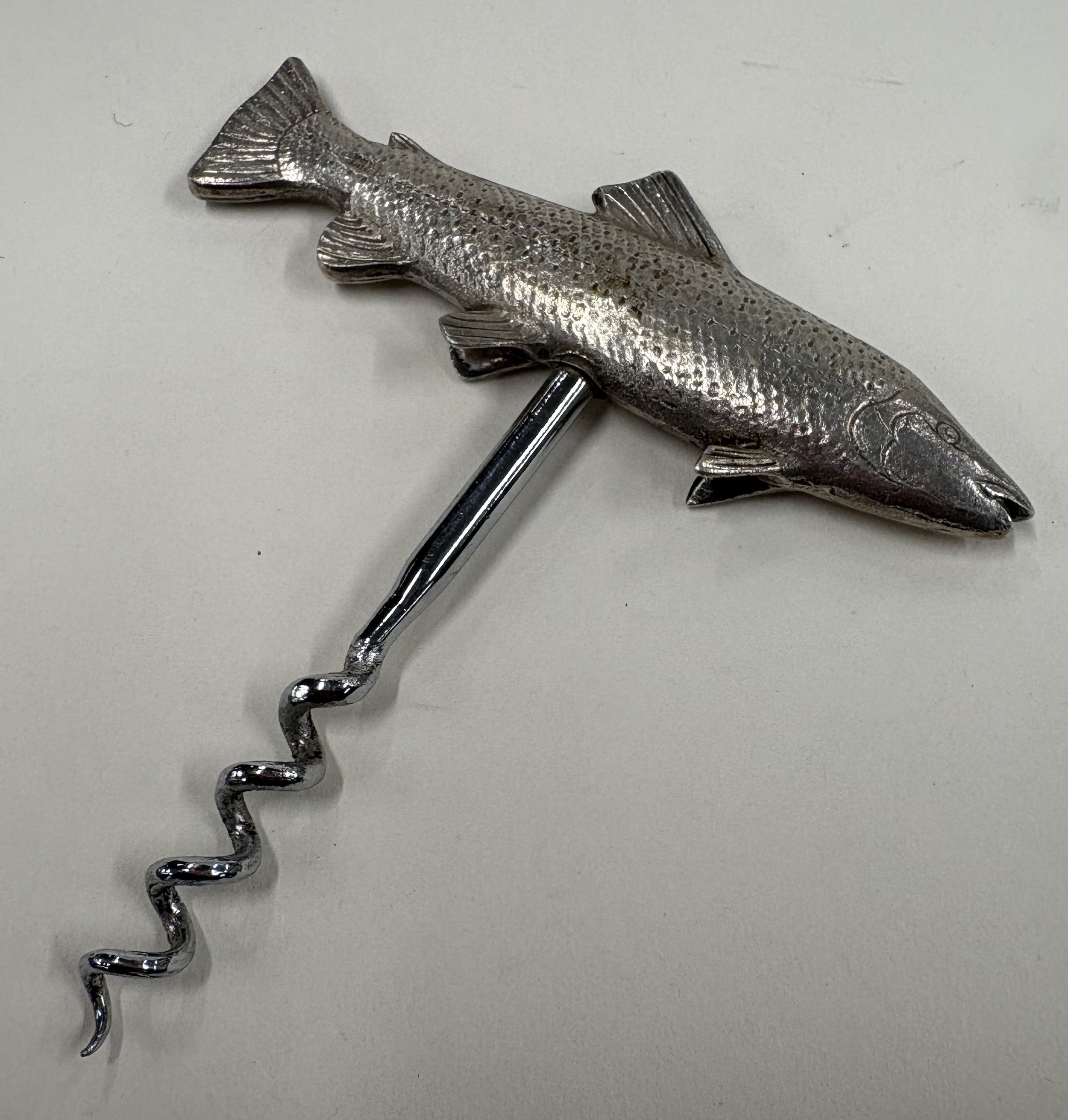 An unusual silver corkscrew in the form of a fish with textured body. Birmingham. By J B Chatterley & Sons Ltd. Approx. 65 grams. Est. £100 - £150.
