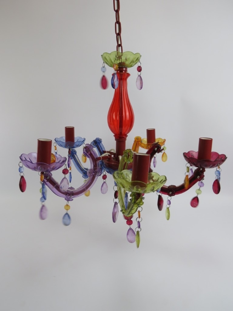 A vintage multicoloured perspex chandelier. Electrically wired. 35 cm height.