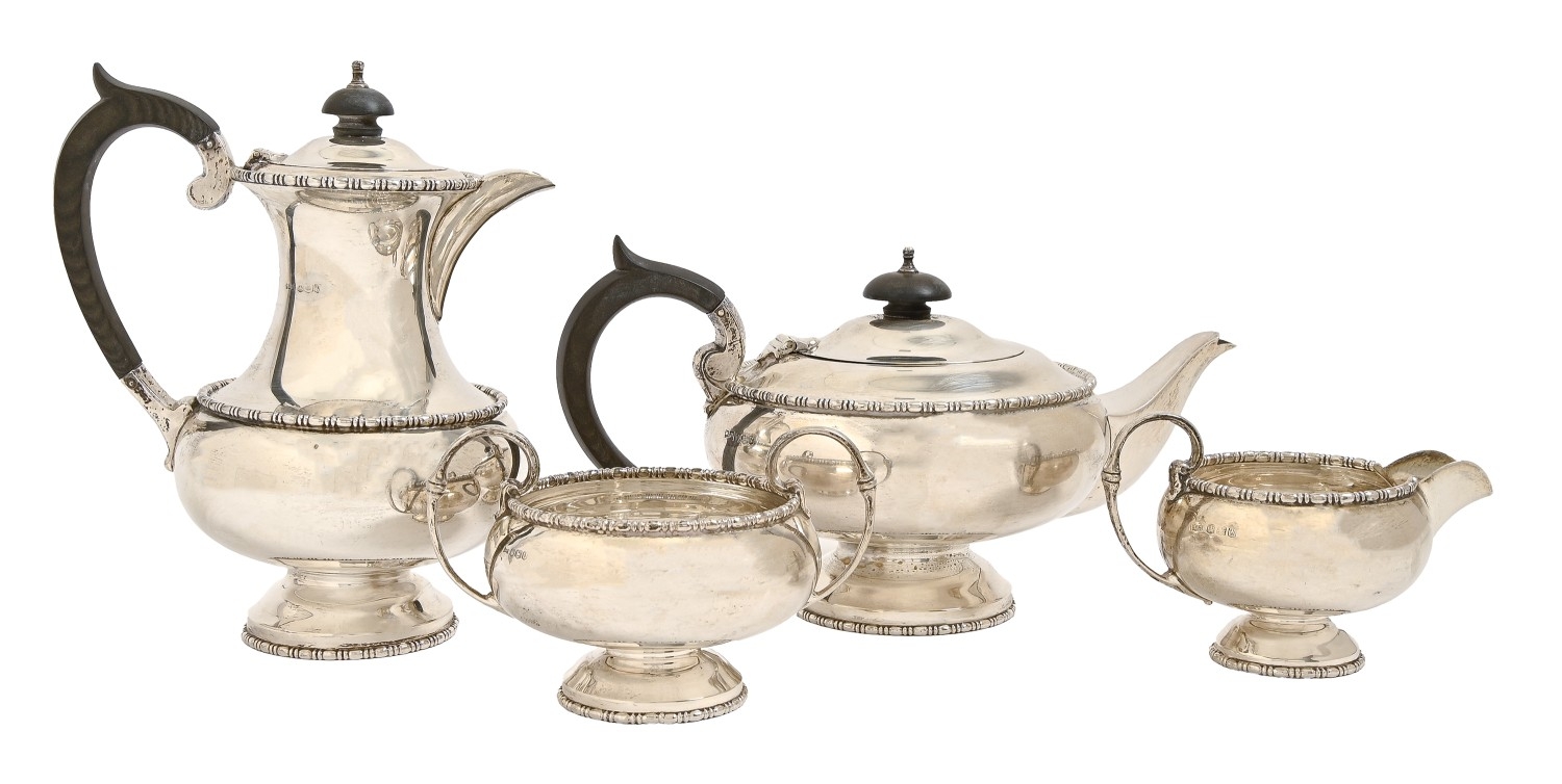 An Elizabeth II silver tea service, lidded jug 20.5cm, by Walker & Hall Ltd, Sheffield 1962-64, 48oz 10dwt (4)