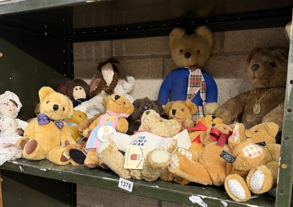 A large quantity of teddy bears & ragdolls including many jointed (Little Folk etc)