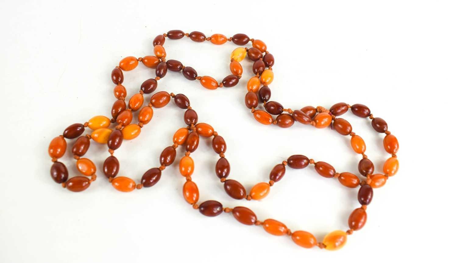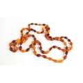 A double strung set of amber beads, the butterscotch, cherry and honey coloured amber beads on a knotted string, 57g.