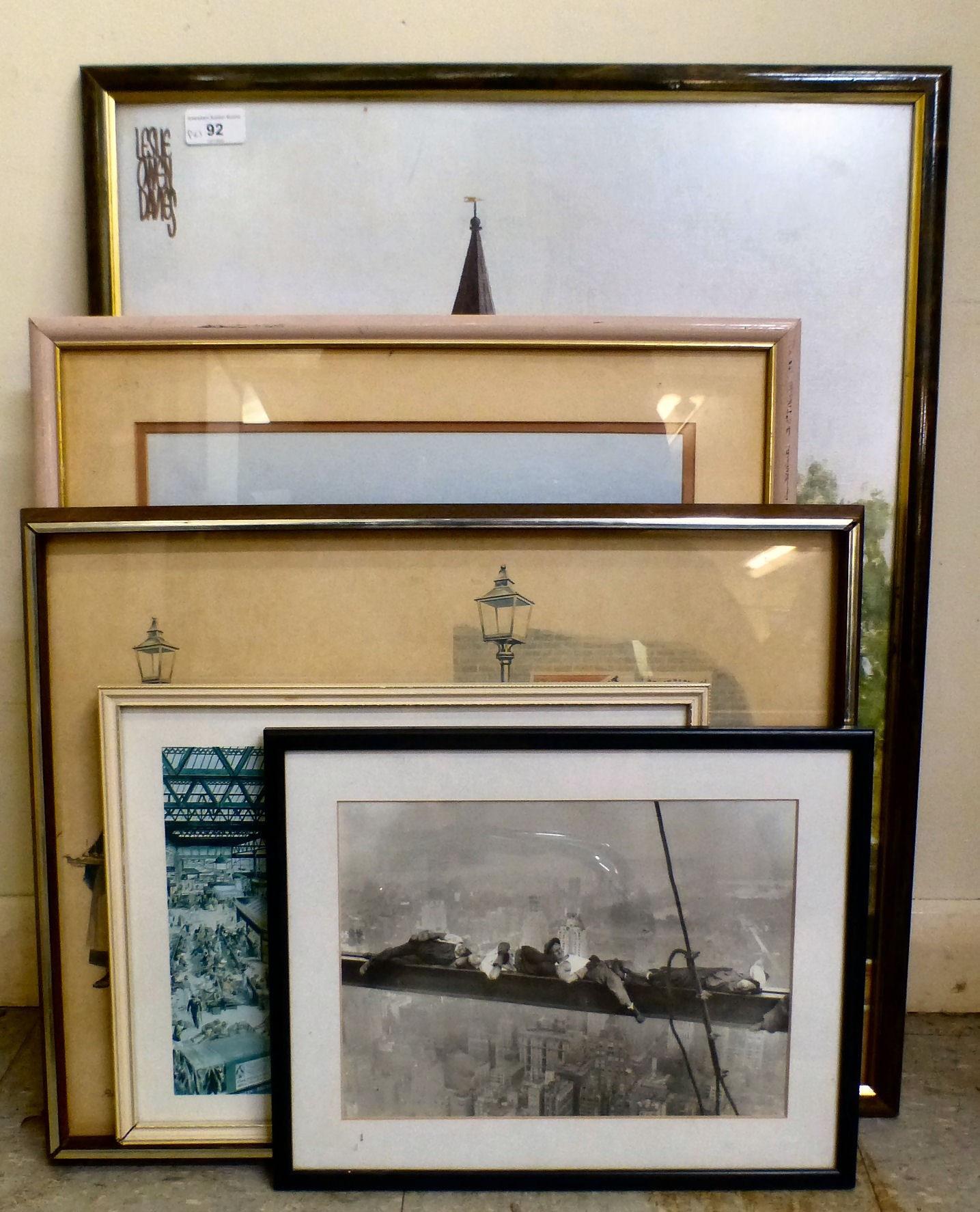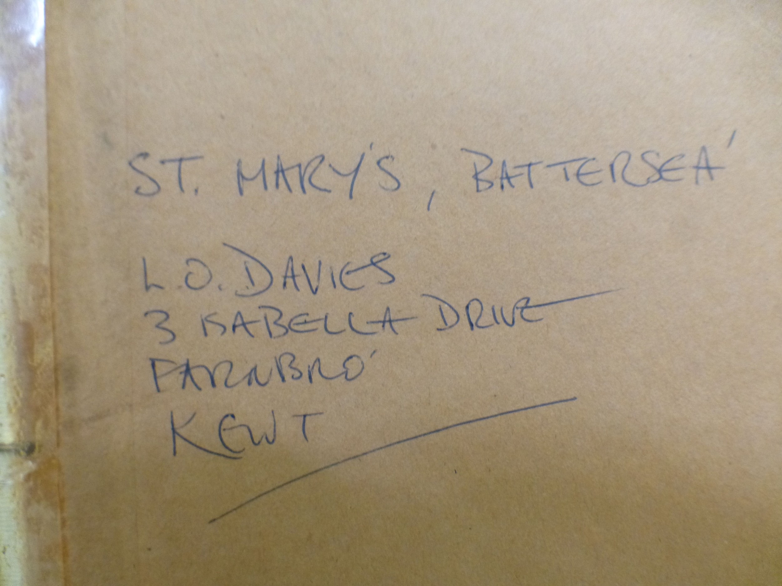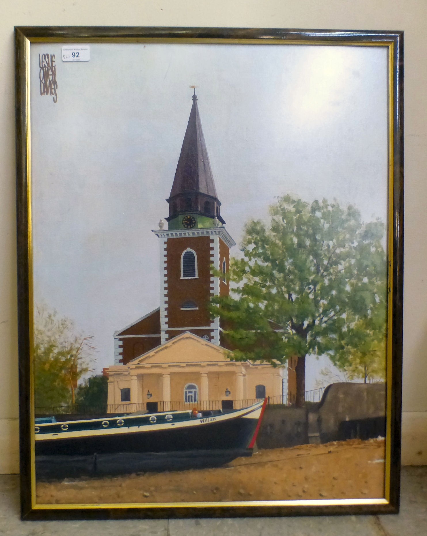 Framed pictures and prints: to include Leslie Owen Davies - 'St Mary's Church, Battersea' oil on board bears a signature 20" x 25"