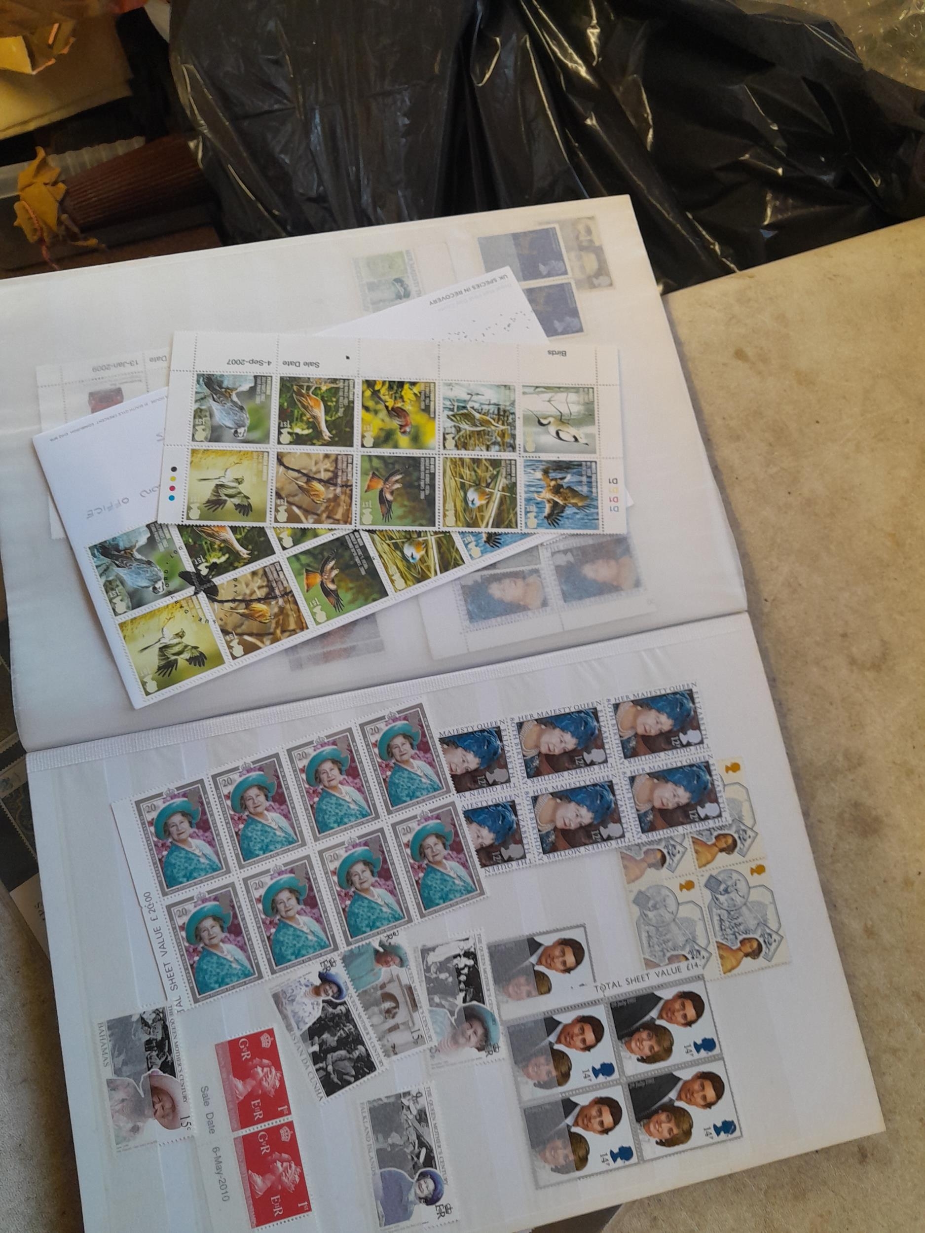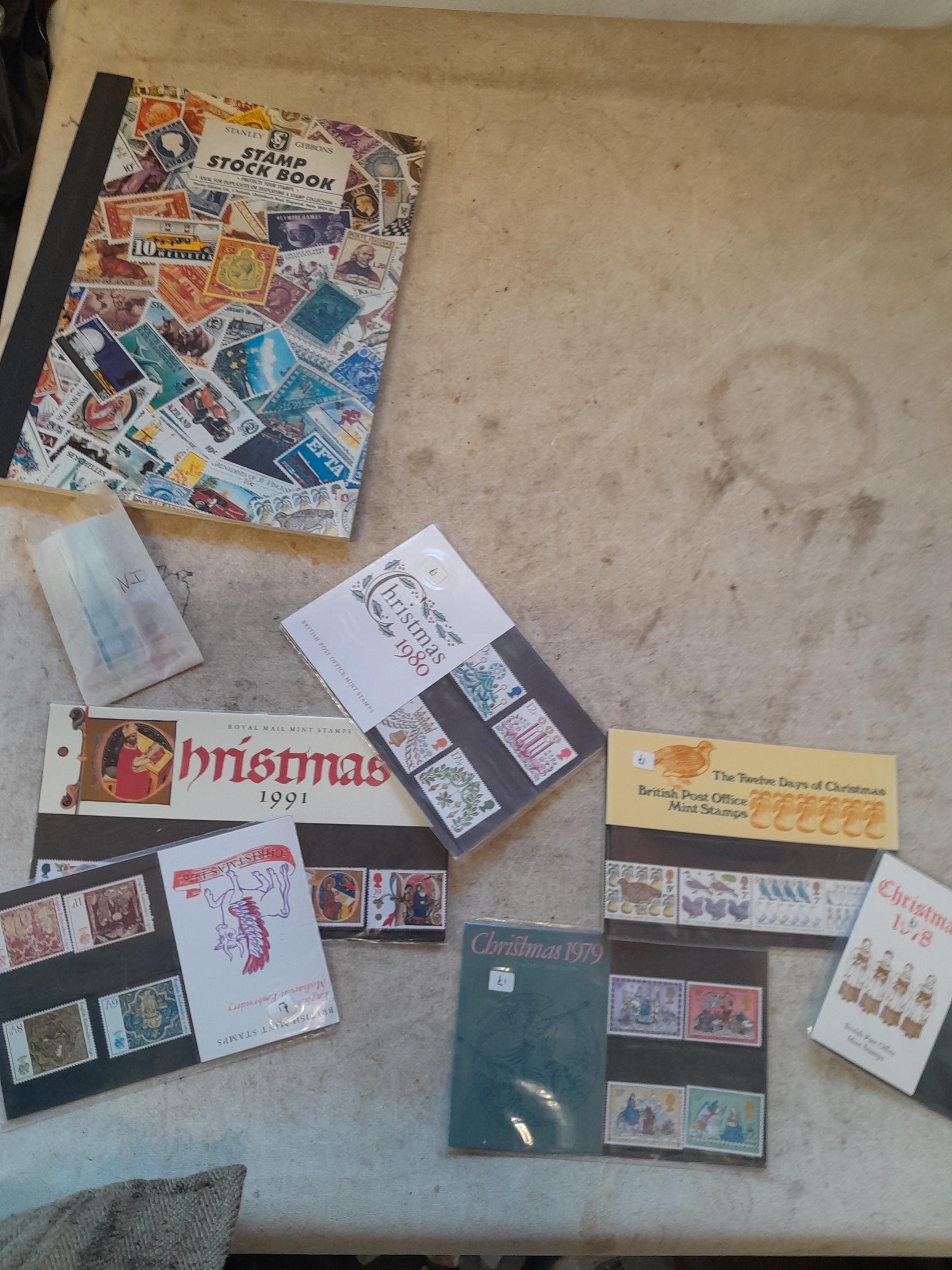 Stamps : stockbook of mint, unused and a few used stamps, mainly GB, Christmas stamps in packets and photograph albums of letter boxes and related items