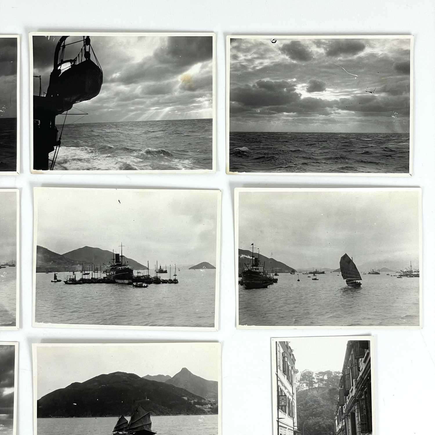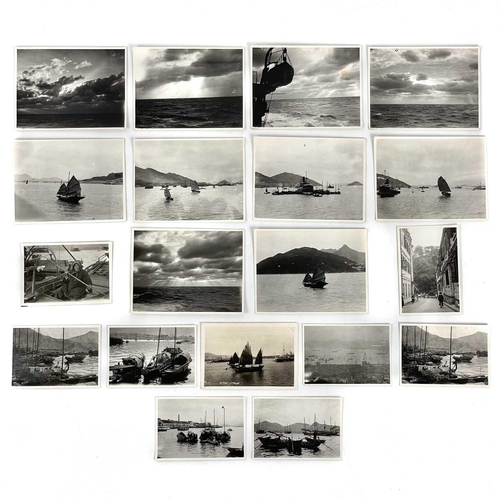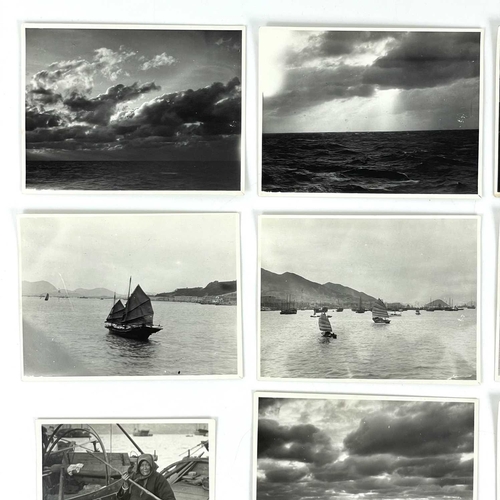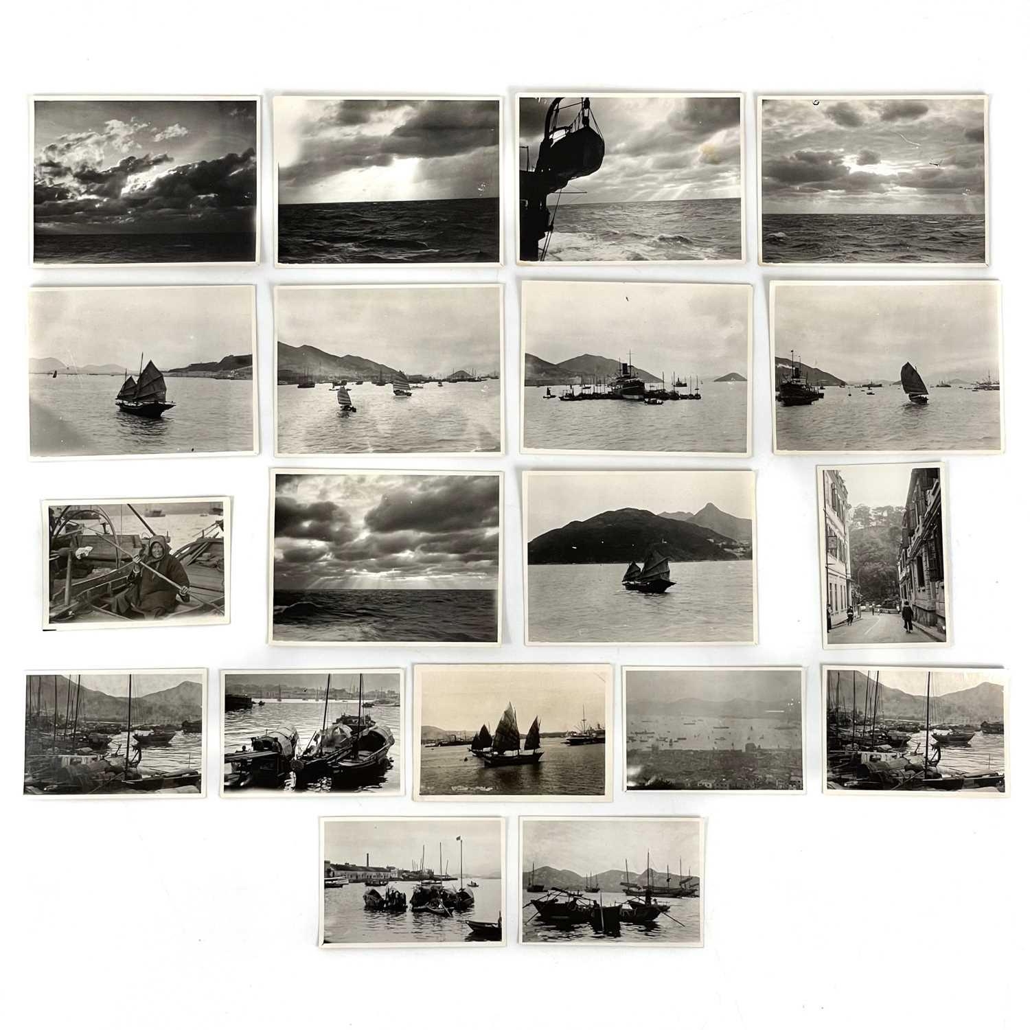 A collection of early 20th century photographs of Hong Kong and Malaysia. Nineteen b+w photographs, depicting Hong Kong sea scenes including woman on a sampan and Penang Harbour, shot by W. A. B. Leach using one of his many cameras which included a '3A Graflex' and 'Thornton Pickard Special Ruby', between the years 1902-1926, various sizes, largest 7.5cm x 10.5cm. (19)