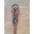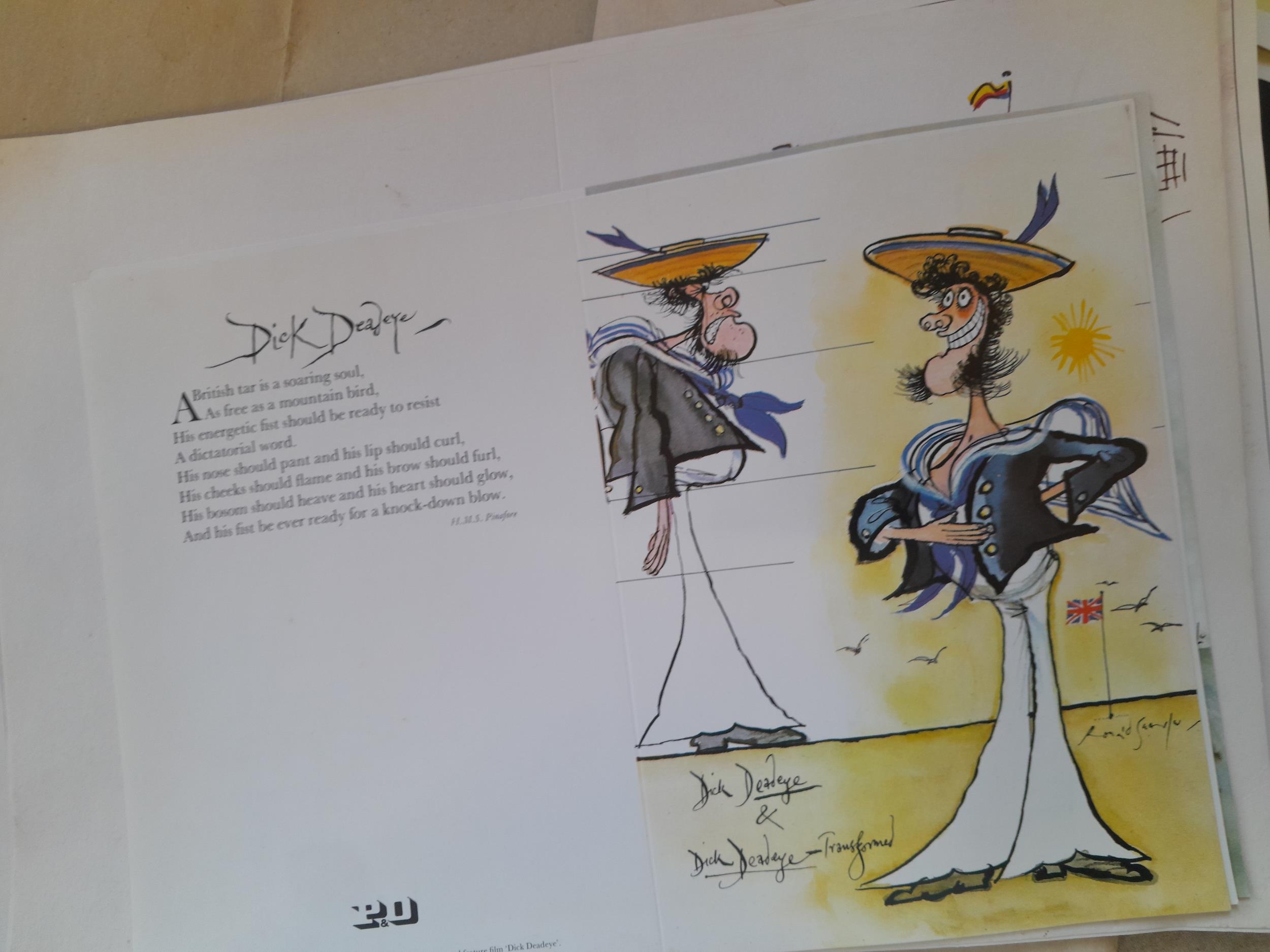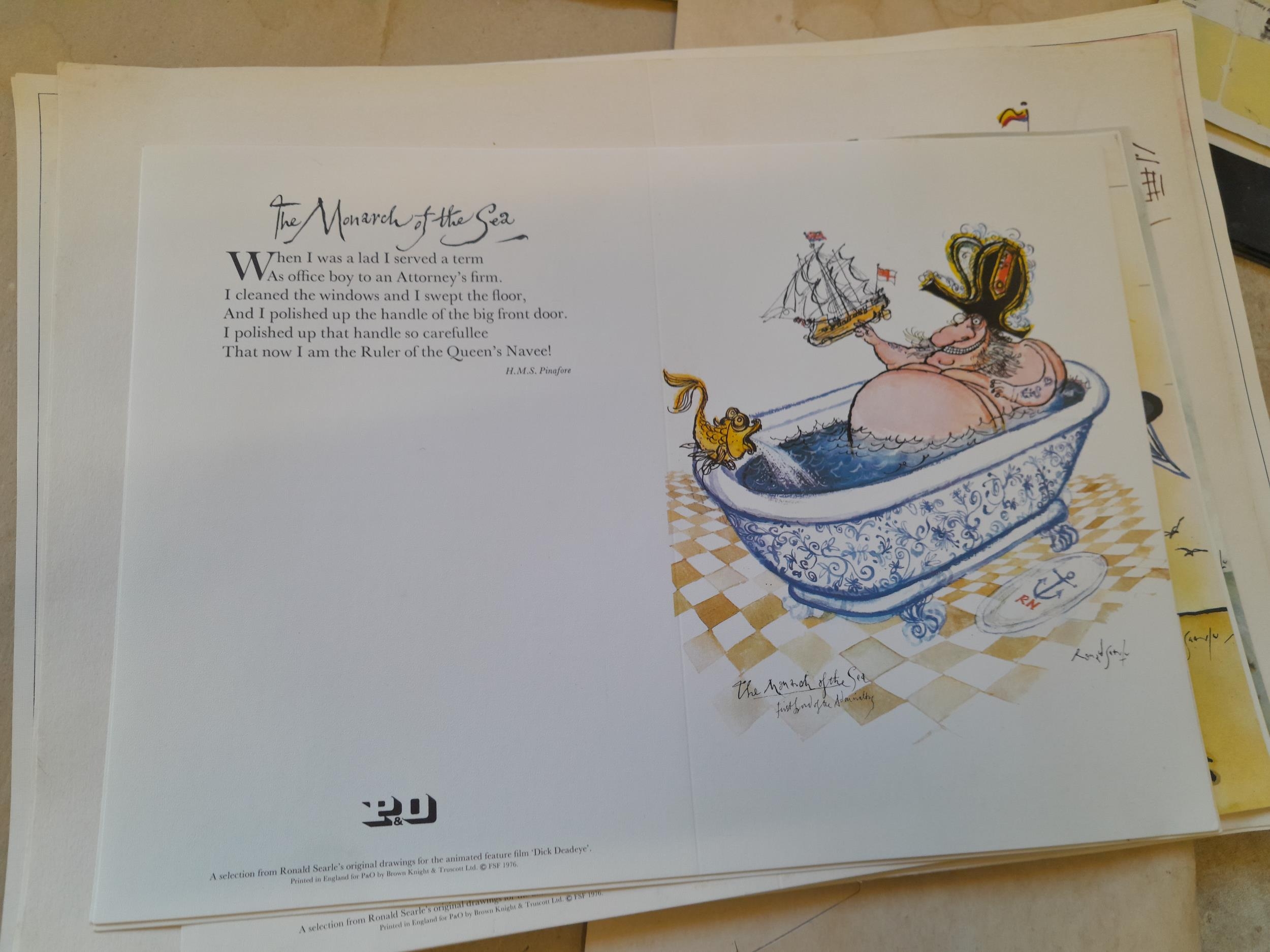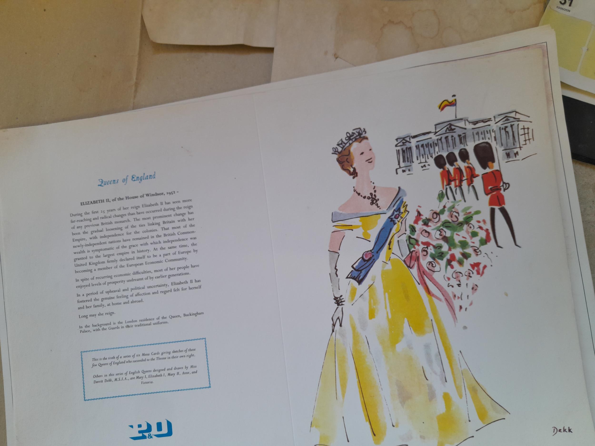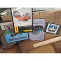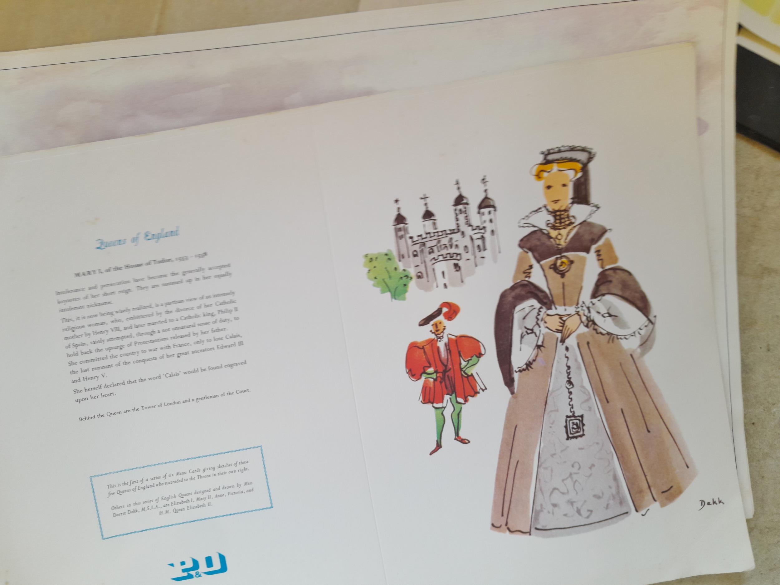 Box of oddments : tin sign modern, resin ornament, car related manuals, prints, African walking stick, ceramic picture , note glaze chip etc.