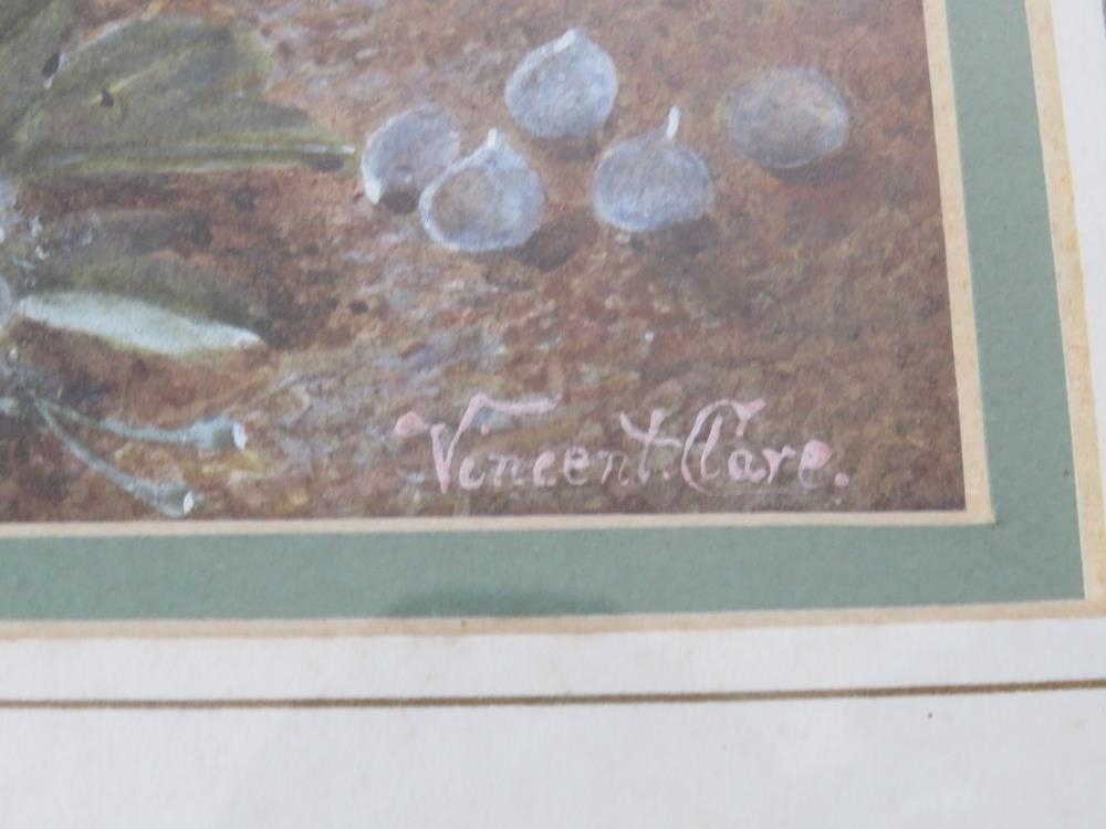 VINCENT CLARE (1855-1930). Still life baskets of flowers, signed lower right, watercolour, gilt framed and glazed, 20.5 x 27 cm