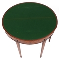 A late George III mahogany demi lune fold over card table ra...