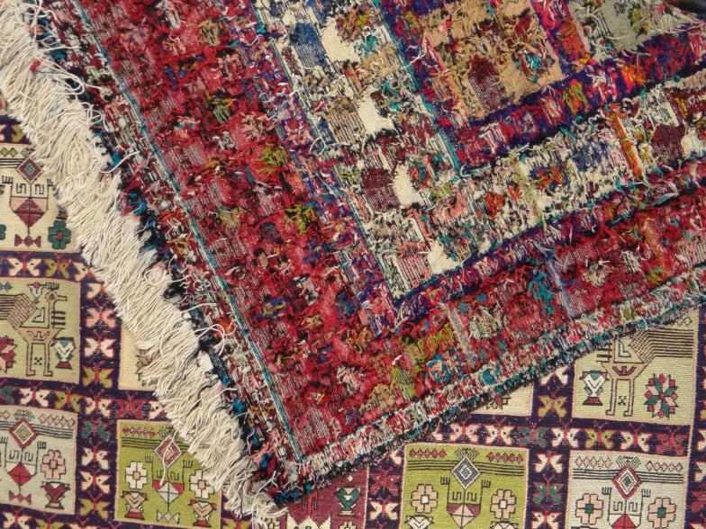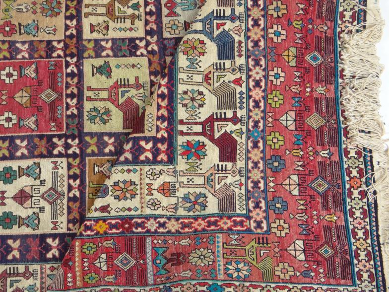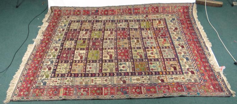 Rectangular rug decorated with squares of birds and flowers, 250cm x 195cm
