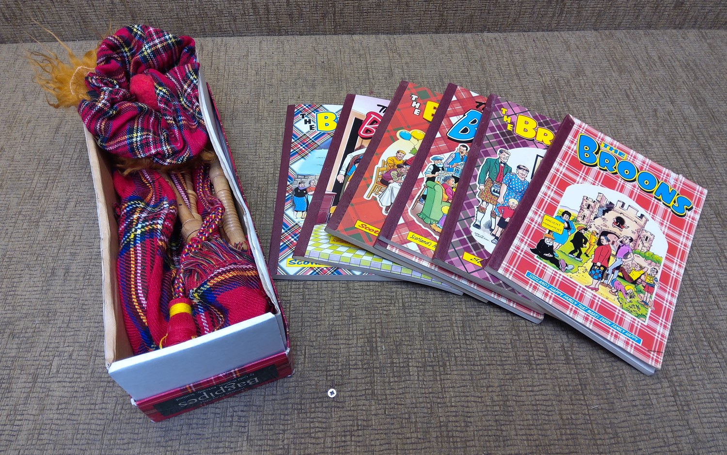 The Broons books and a boxed set of bagpipes