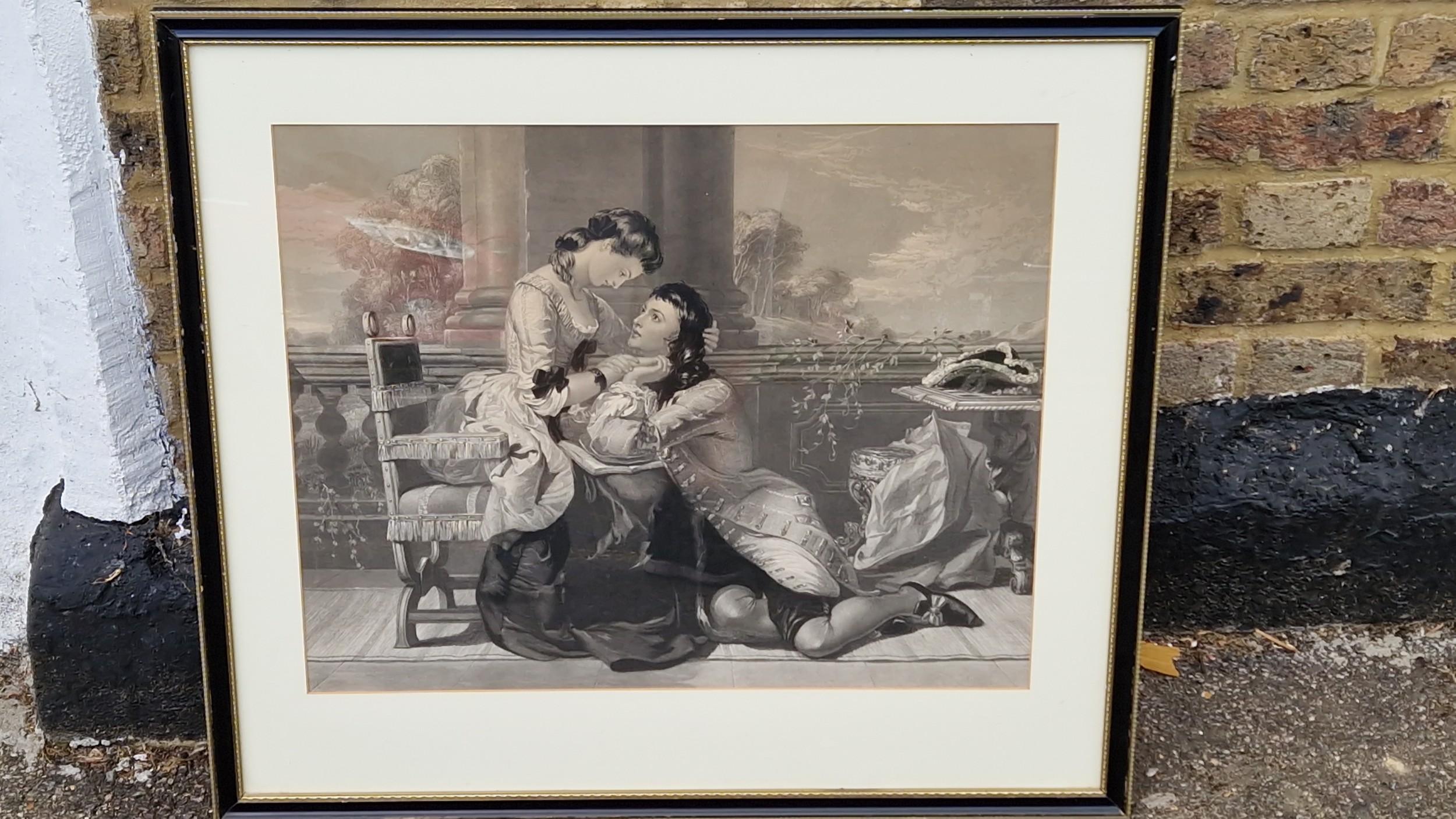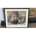 LARGE FRAMED & GLAZED EARLY BLACK & WHITE LITHOGRAPH - 78CMS X 68CMS - COLLECTION ONLY OR ARRANGE OWN COURIER