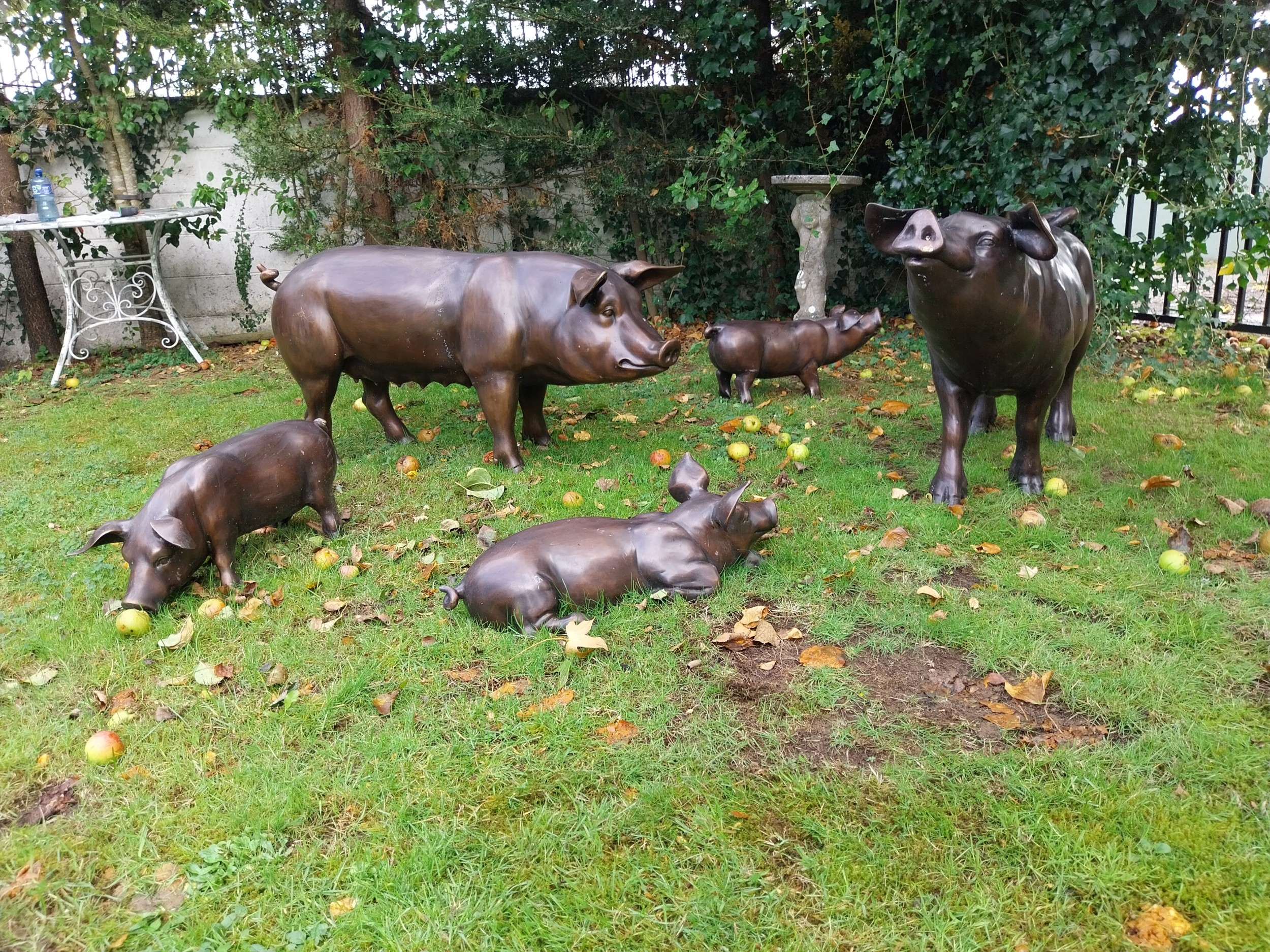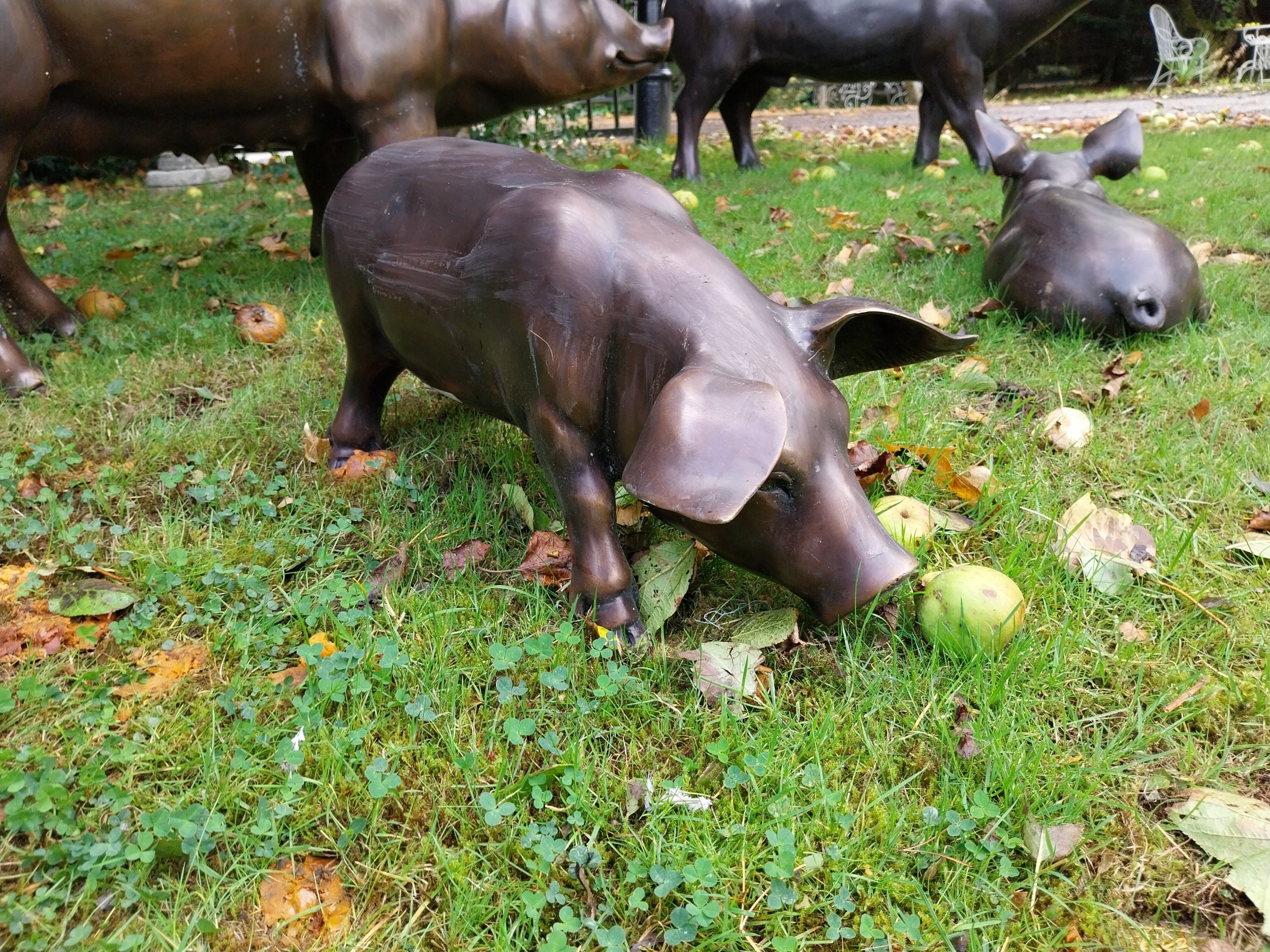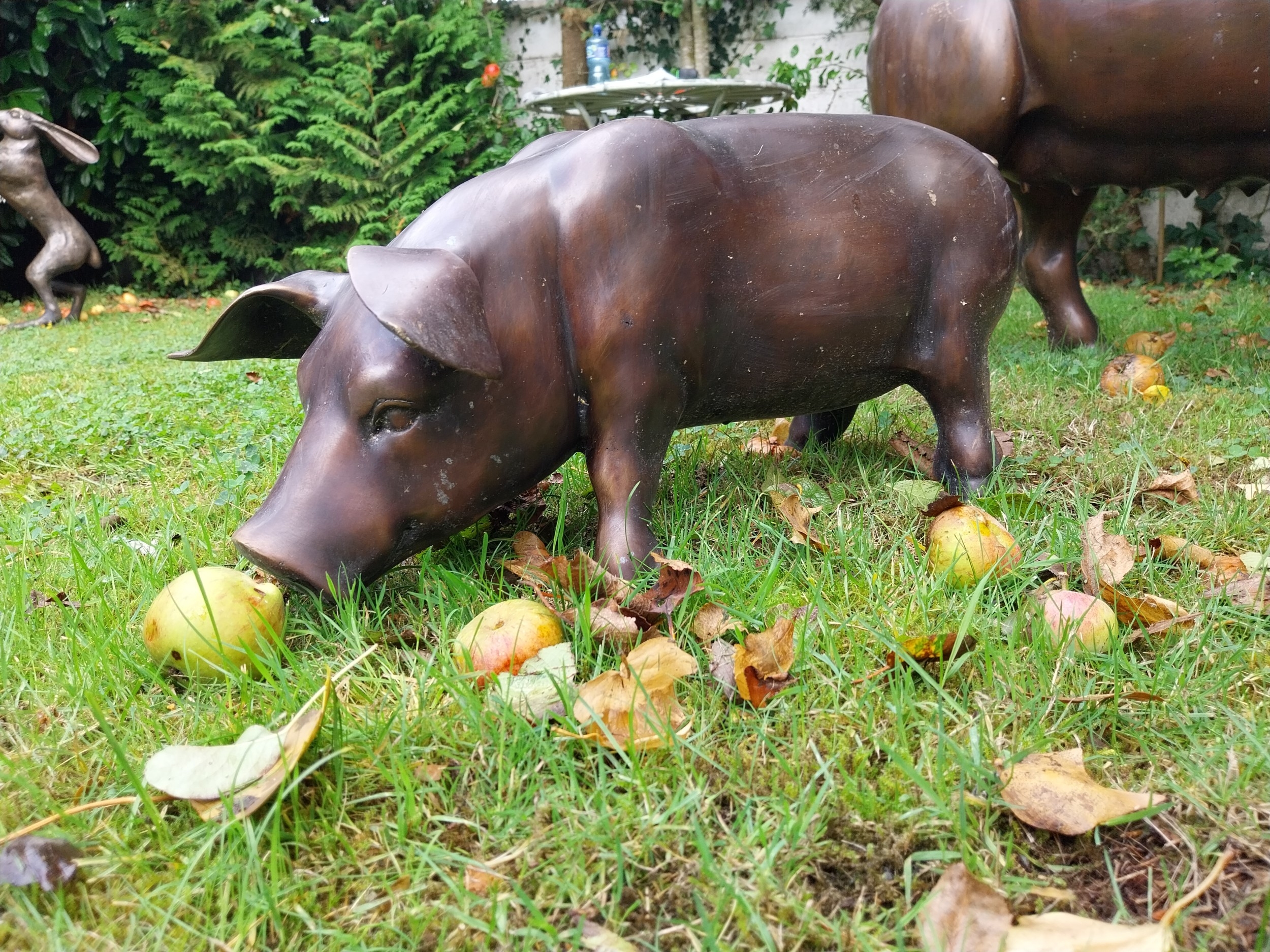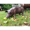Good quality bronze sculpture of a Piglet, Head down . { 30cm H X 64cm W X 29cm D }.