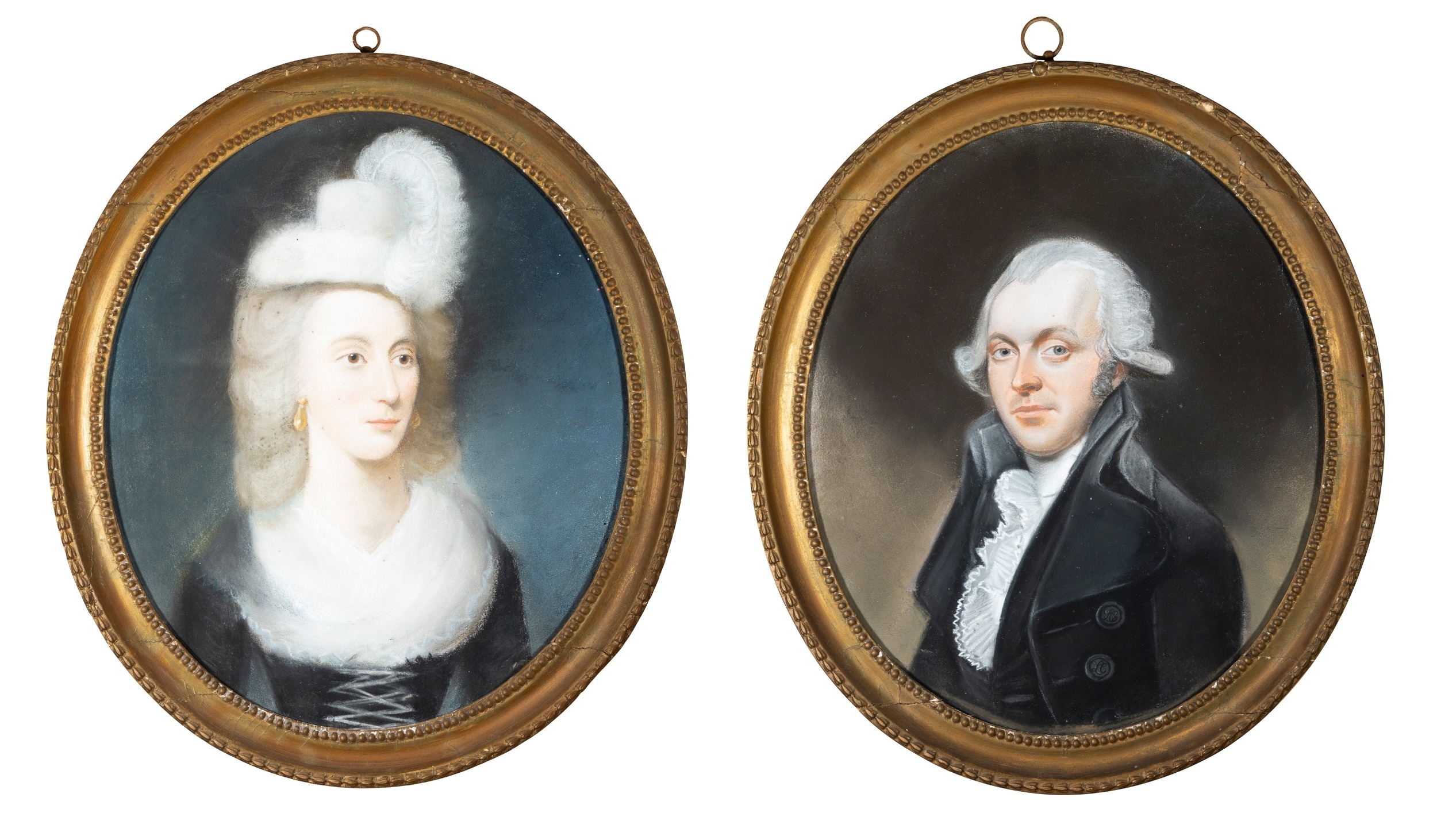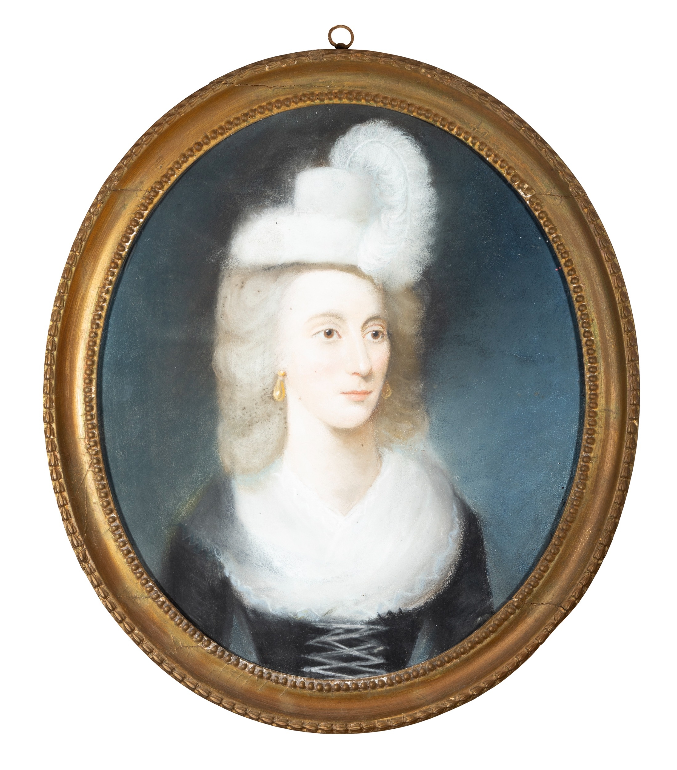 PROVINCIAL IRISH SCHOOL, 18TH CENTURY Portrait of a Lady, a Large Plume in her Hat; and Portrait of a Gentleman in Black, Each Shoulder Length Pastel, 39 x 32.5cm (2) Each with handwritten inscriptions verso 'The Likeness of my father together with those of my mother and grandmother suspended near it. To go to my brother Wheaton Bradish at my death' Possibly depicting husband and wife James Bradish and Mary Humphry.