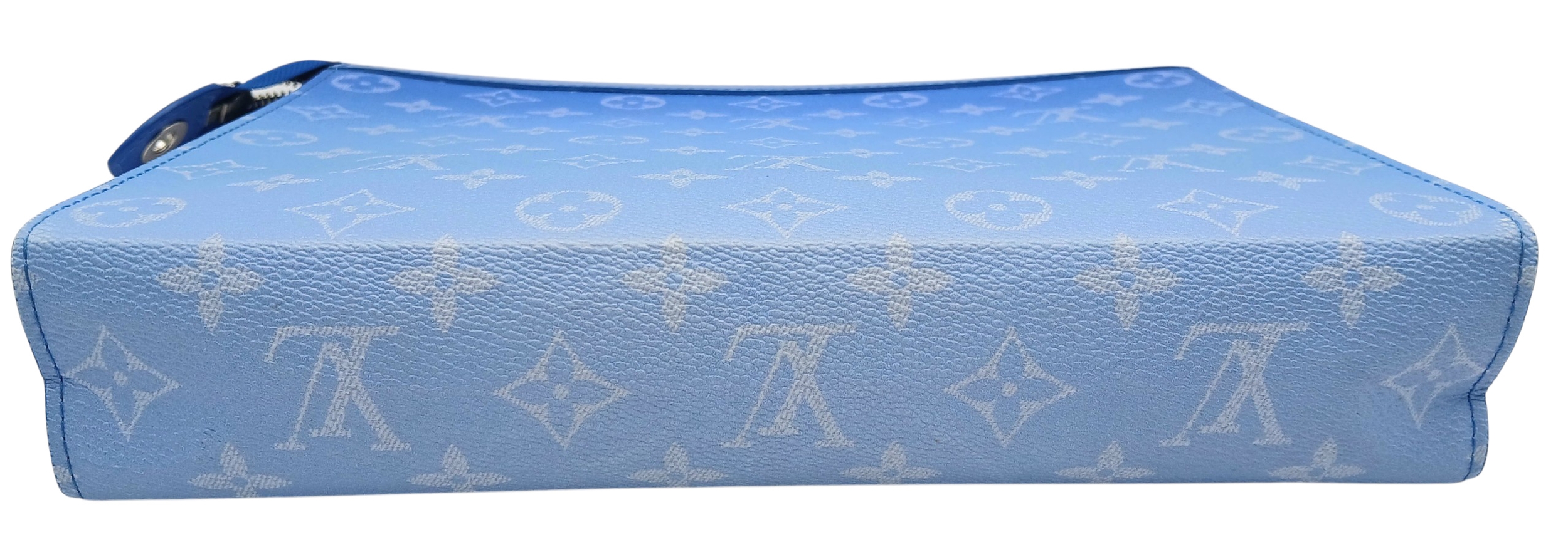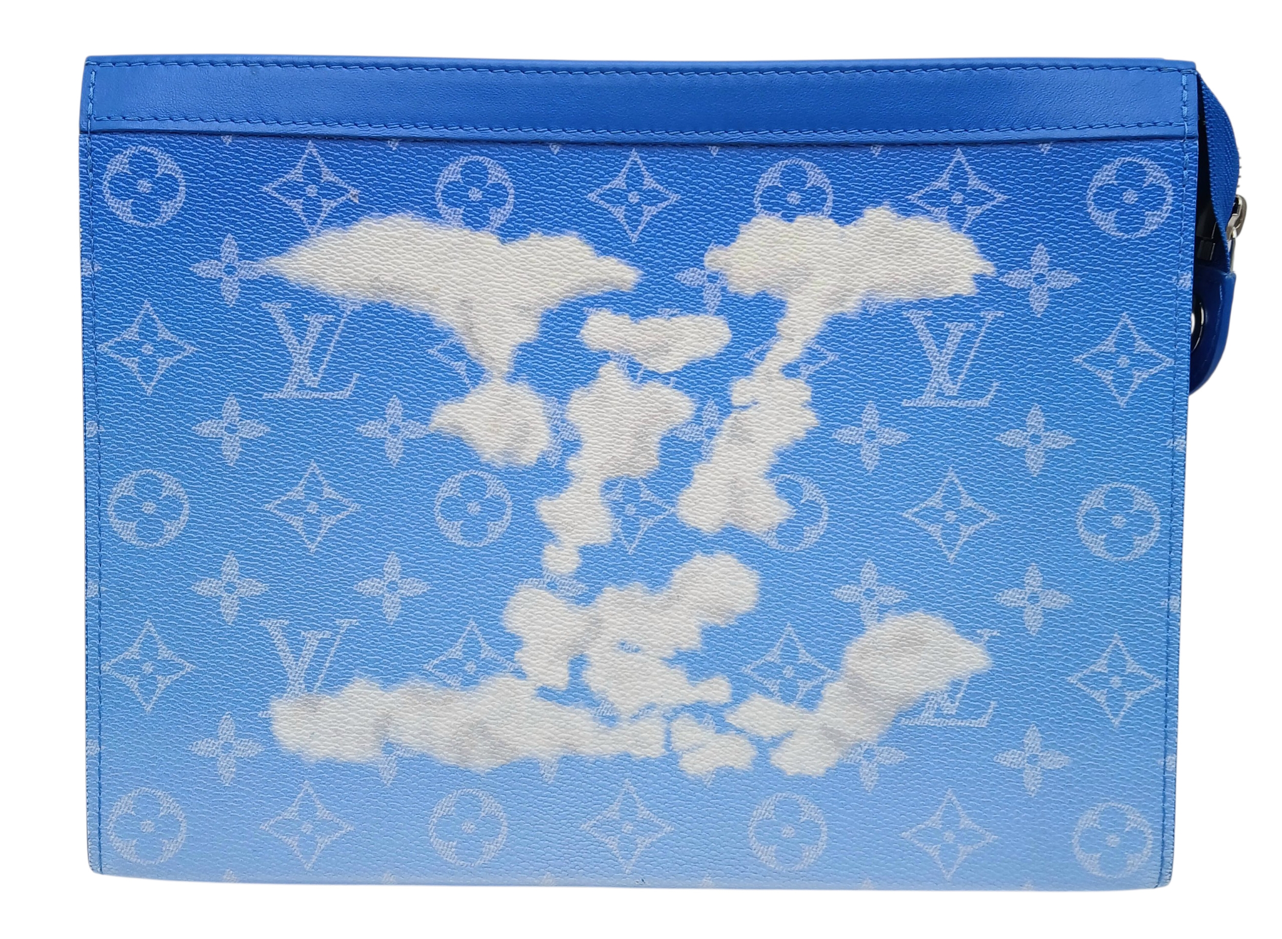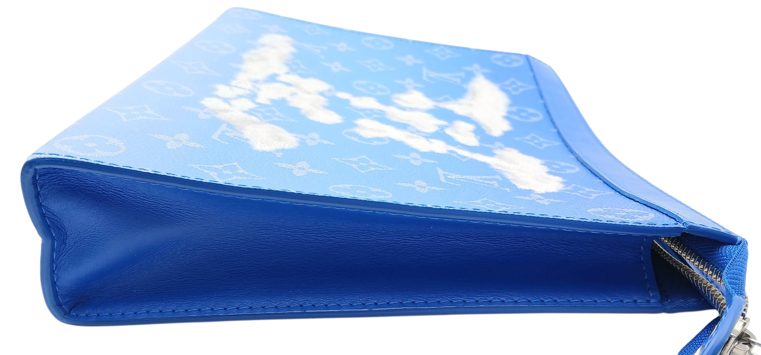 A Louis Vuitton Monogram Clouds Pochette. Crafted in blue monogram coated canvas featuring the distinctive cloud motif from the Men’s Autumn-Winter 2020 collection, with tonal leather trim and silver-tone hardware. Top zip fastening opening to a blue textile-lined interior with multiple card slots and a central compartment. Comes with original box, dust bag, and booklet. In excellent overall condition. Please see photos for details or request a condition report. Come with original packaging. Measurements: W27.5 X H22 cm. Ref: 08080
