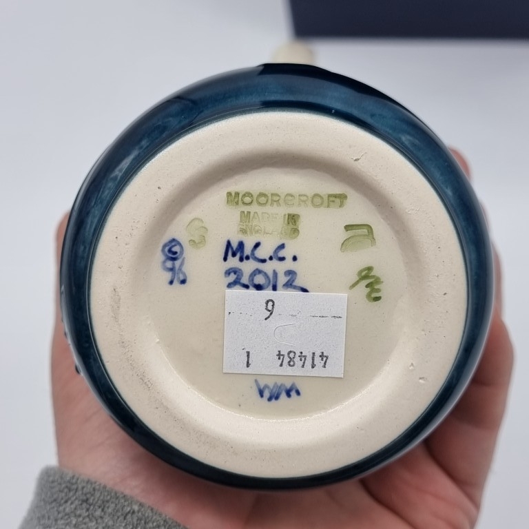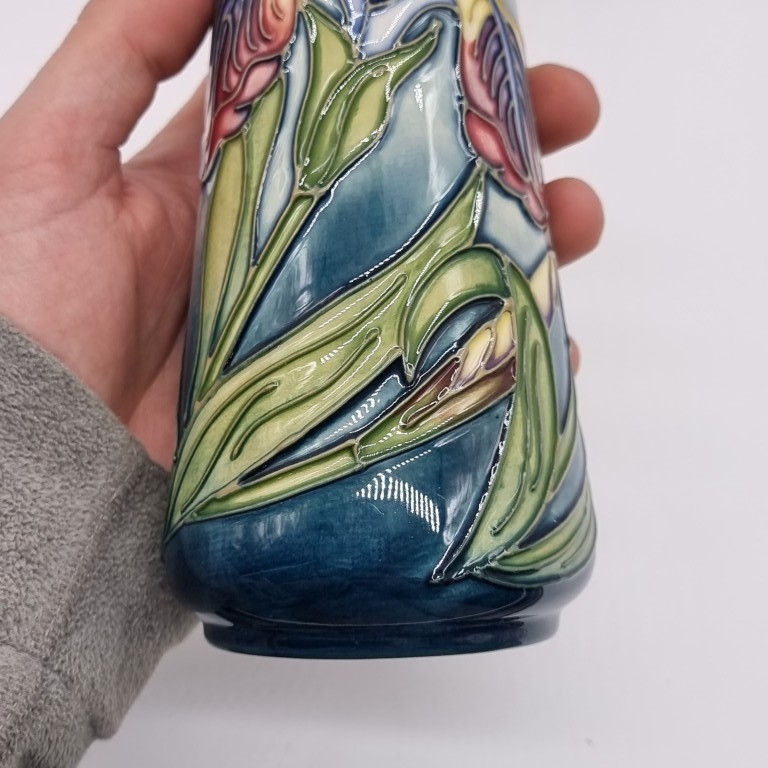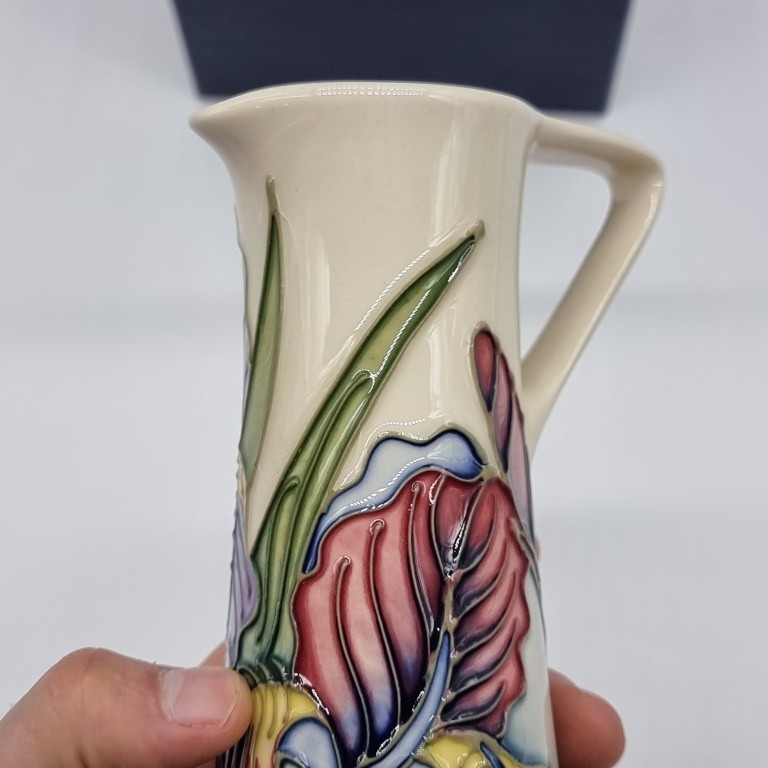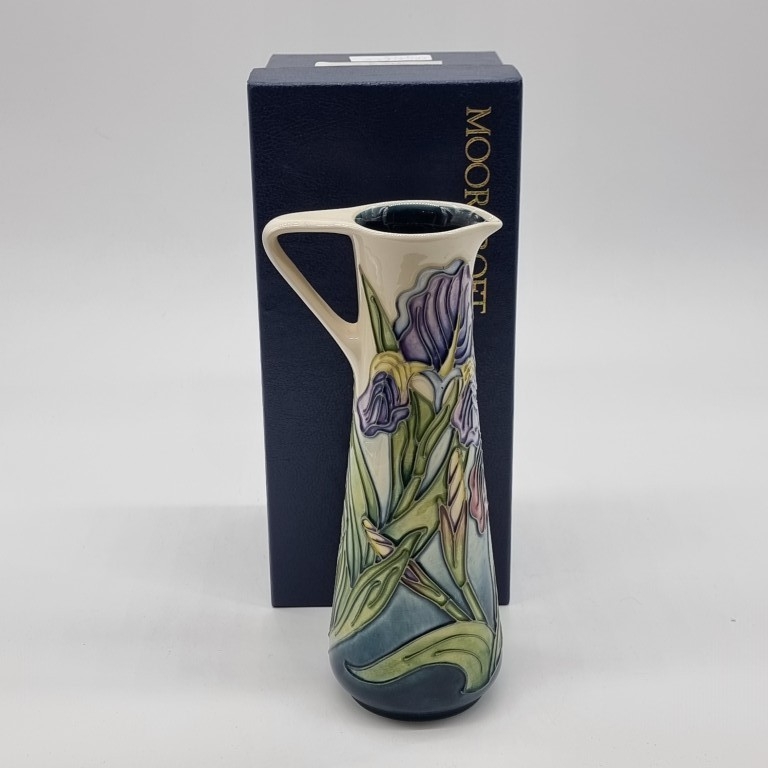 A Moorcroft 'Iris' pattern ewer, by Rachel Bishop, 24cm high, boxed.