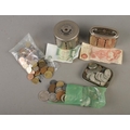 A collection of assorted world coins along with two home penny bank to include Barclays Bank Home Safe and The Yorkshire Penny Bank with contents.
