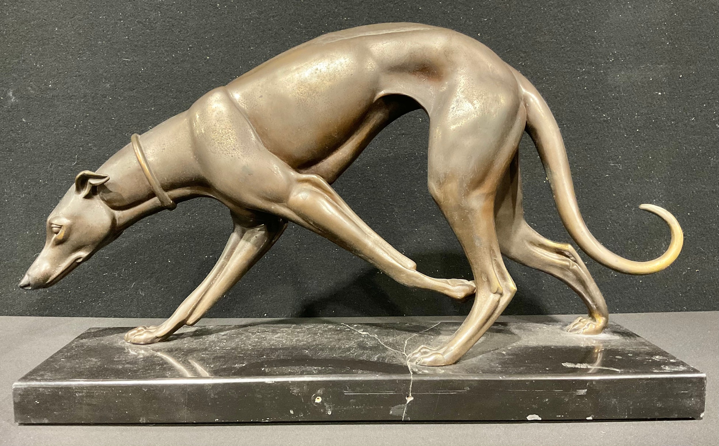Continental School, an Art Deco style model, of a greyhound, marble base