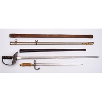 A Japanese 1897 pattern bayonet: with 39.5cm fullered blade, with wood slab grips in a steel scabbard, together with an American bayonet (2).