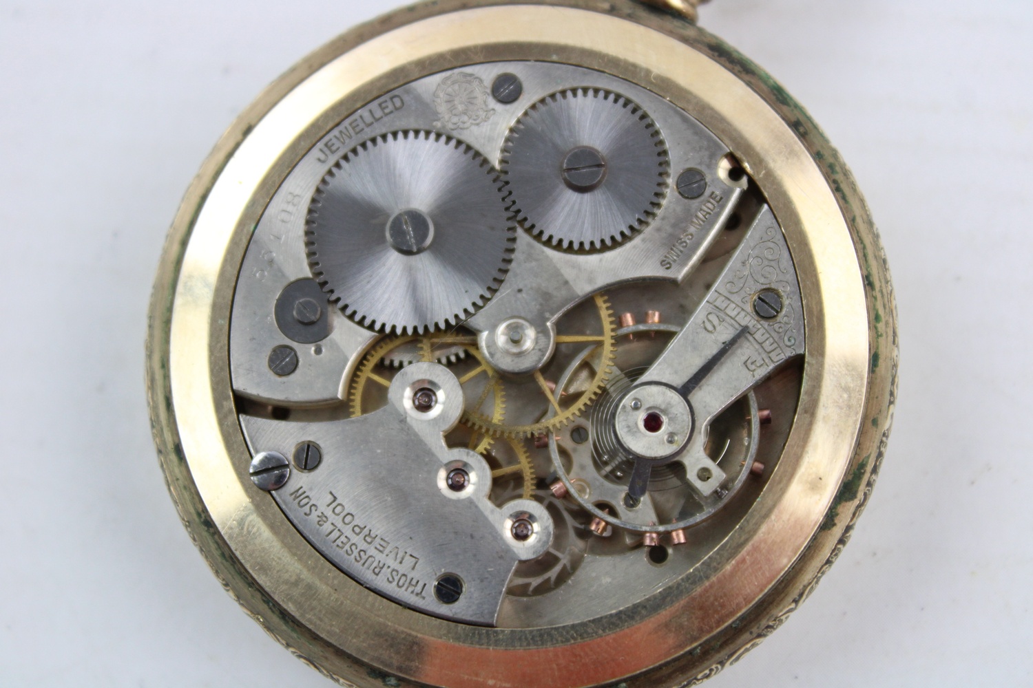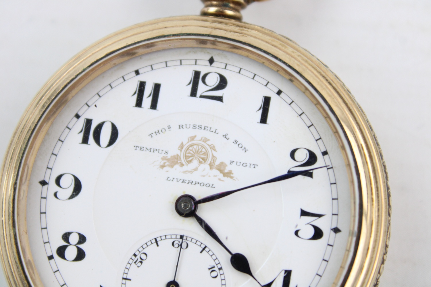 Vintage Gents THOMAS RUSSELL & SON Liverpool Gold tone POCKET WATCH Hand-Wind