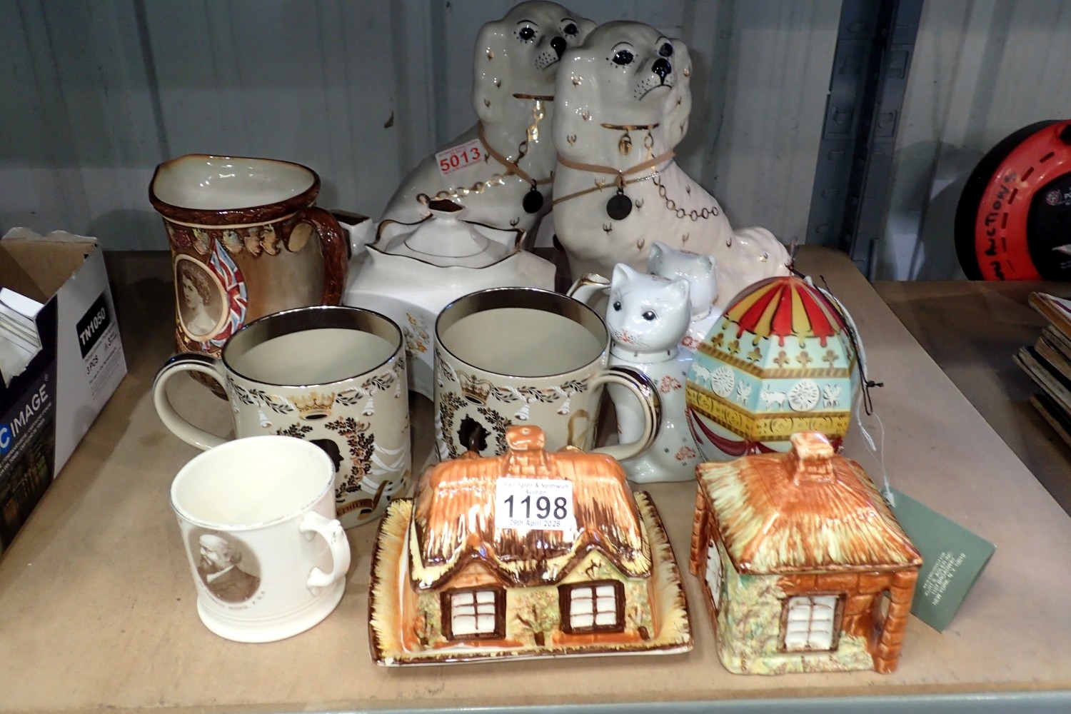 Mixed ceramics including pair of Staffordshire dogs. Not available for in-house P&P.