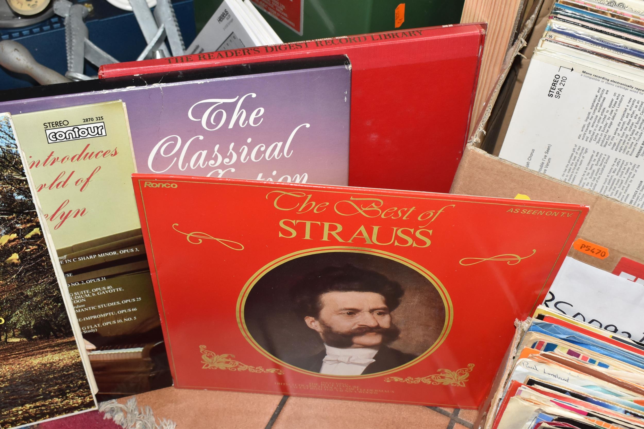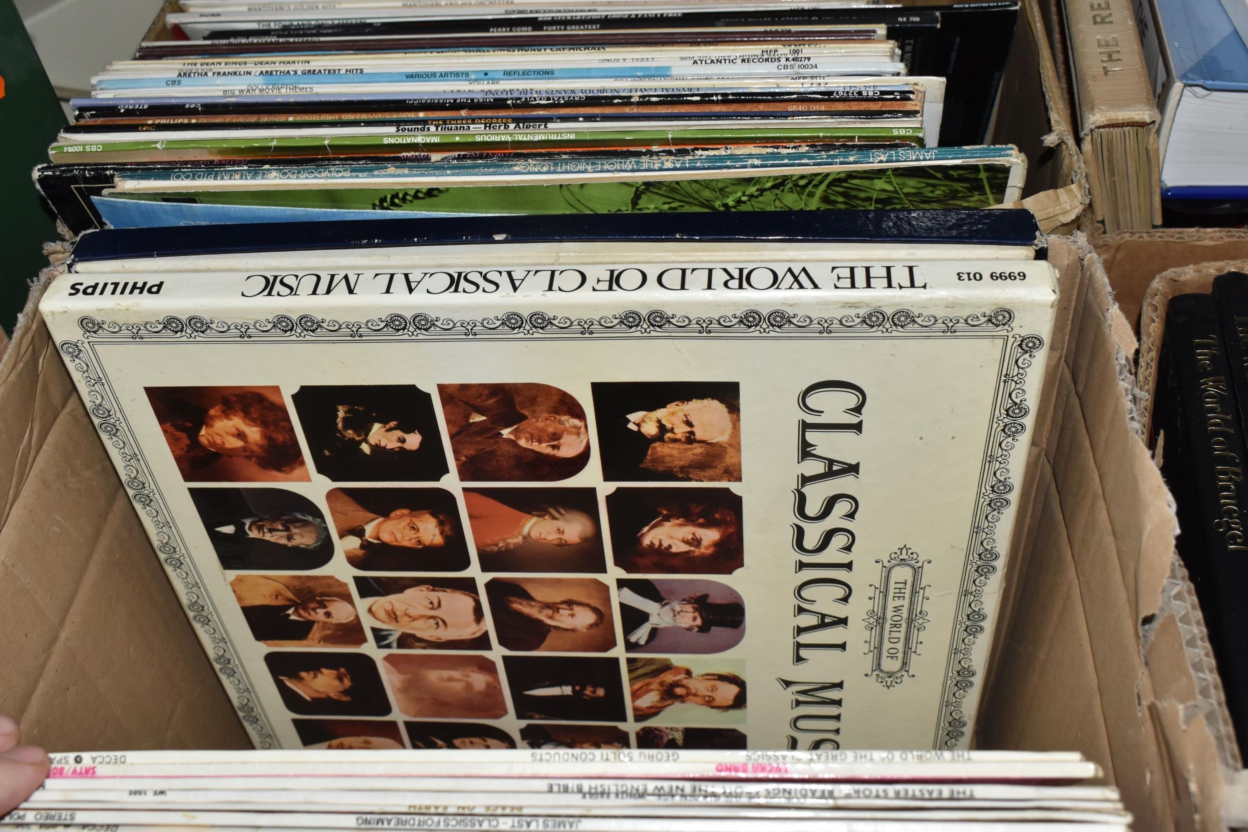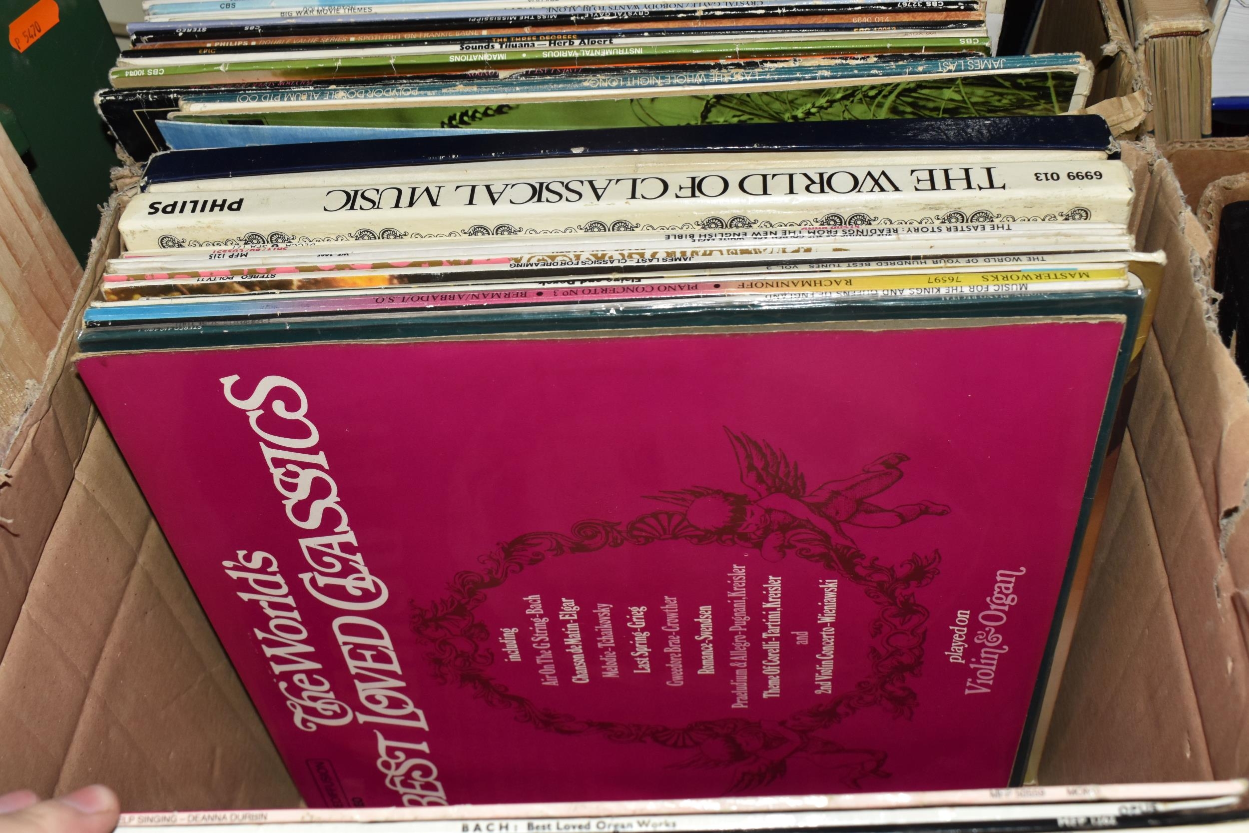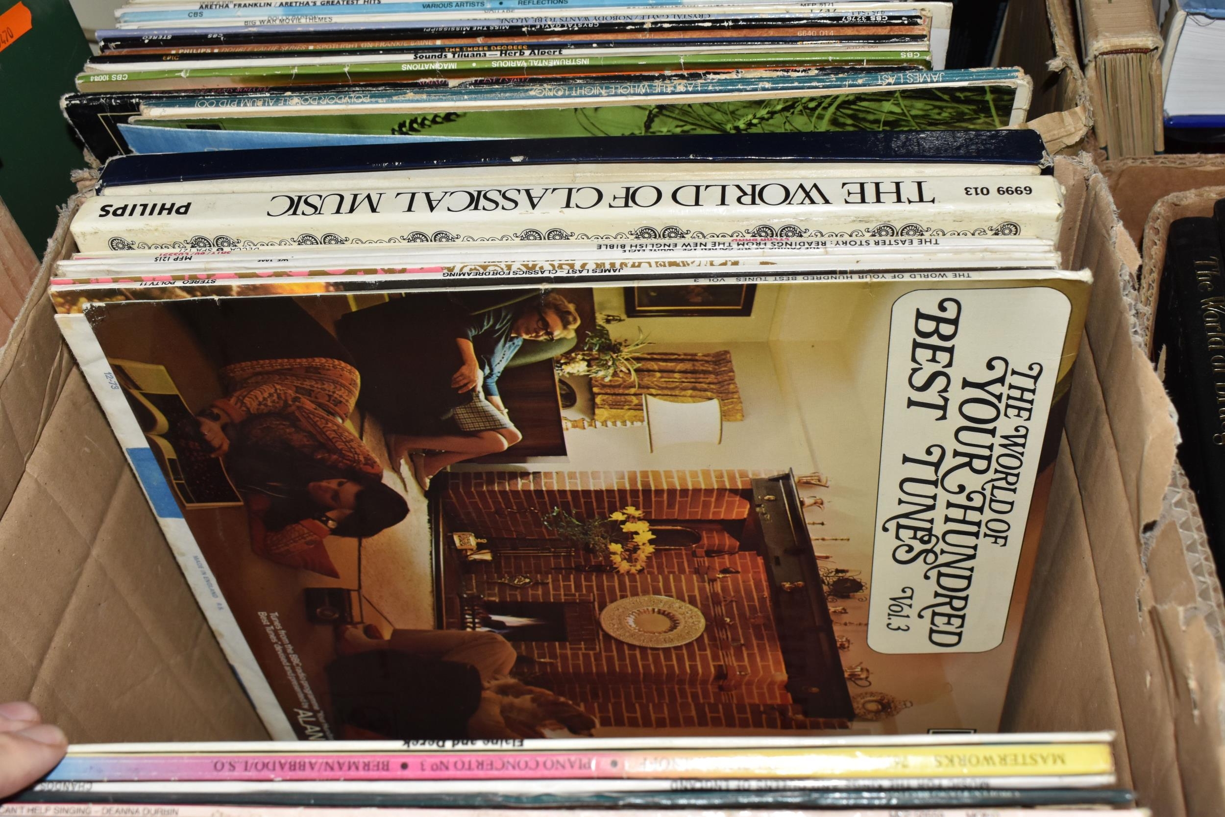 THREE BOXES OF LPS AND R.P.M, to include classical, Jazz, pop, rock, blues, easy listening etc. approximately one hundred (sd), (3 boxes)
