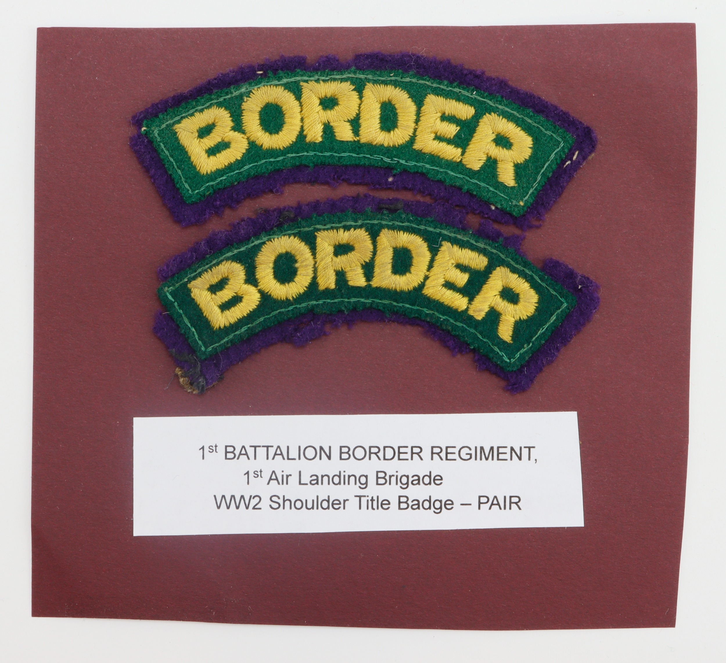 1st Battalion Border Regiment, 1st Air Landing Brigade WW2 embroidered felt shoulder title badge pair in excellent worn condition.