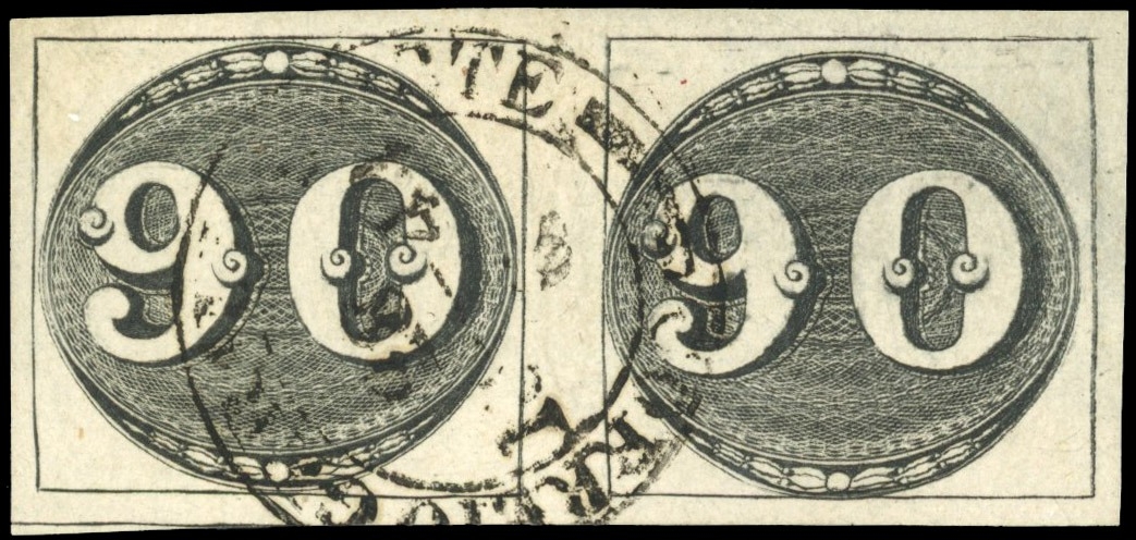 Bull's Eye: 1843 Clear Impression 90r horizontal pair, good even margins used with large part double-ring date stamp of Correio Gera Del Norte, reverse with W. Balasse signature and Roumet handstamp.
