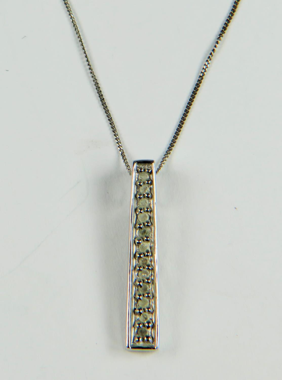 9ct white gold diamond bar pendant necklace (1.6g) 2030403