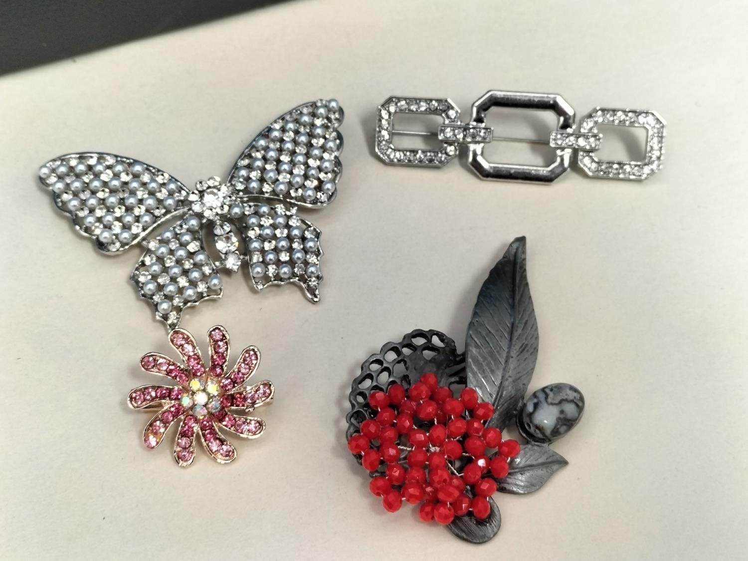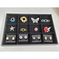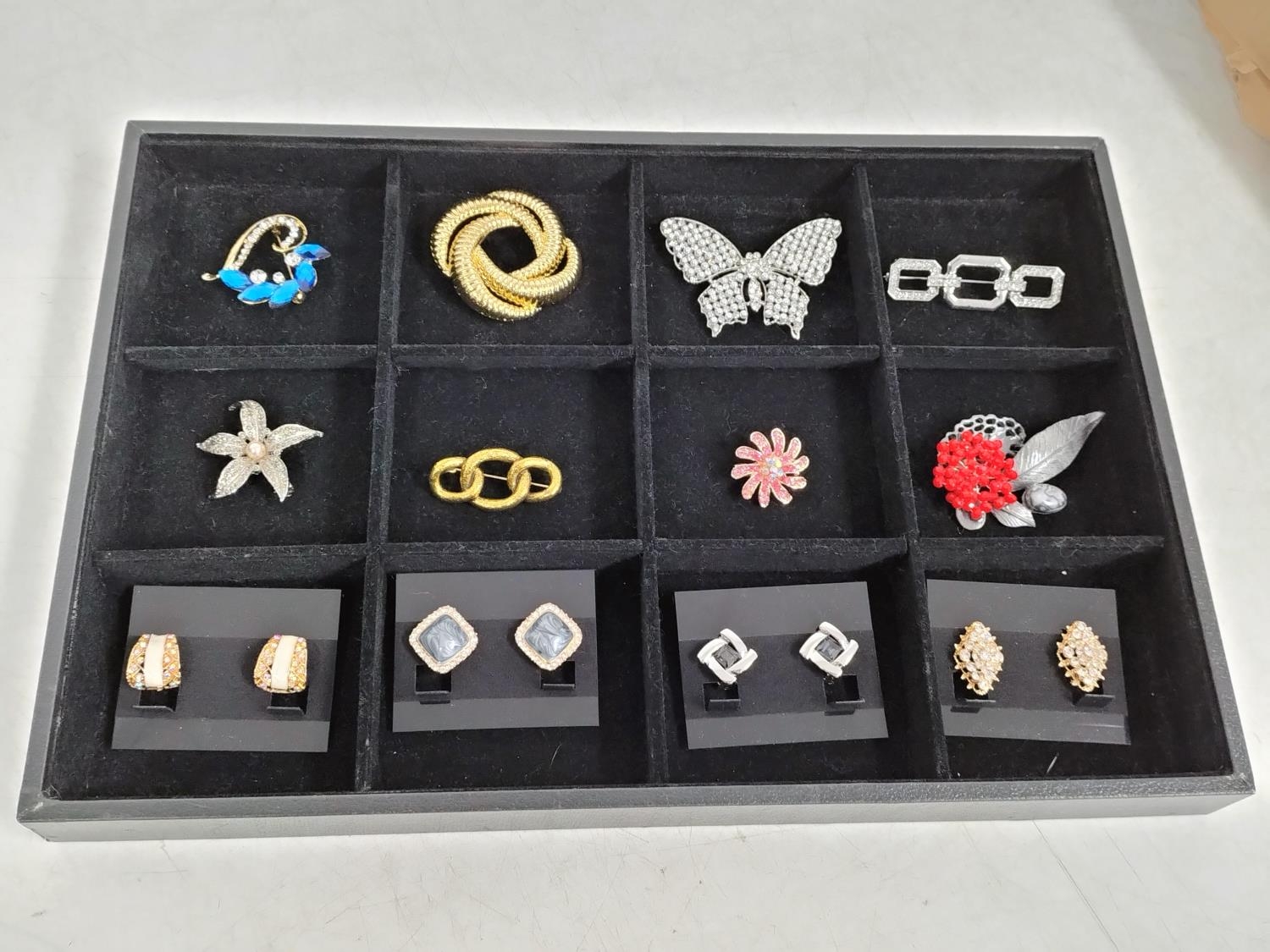 Tray of Mixed Brooches and Clip on Earrings. Tray Size 3.5cm High, 35cm x 24cm.
