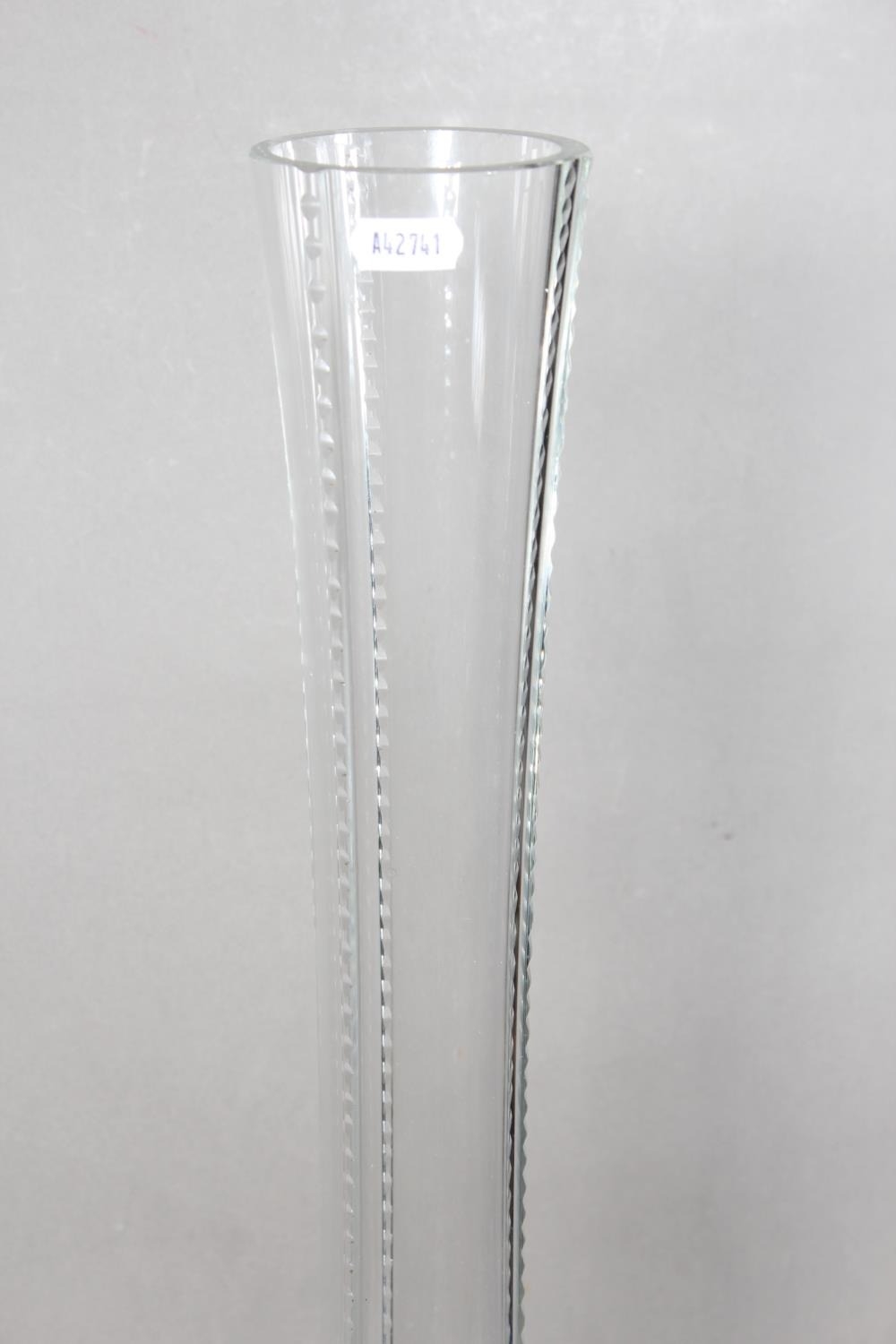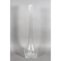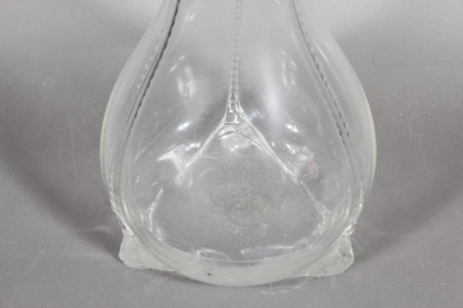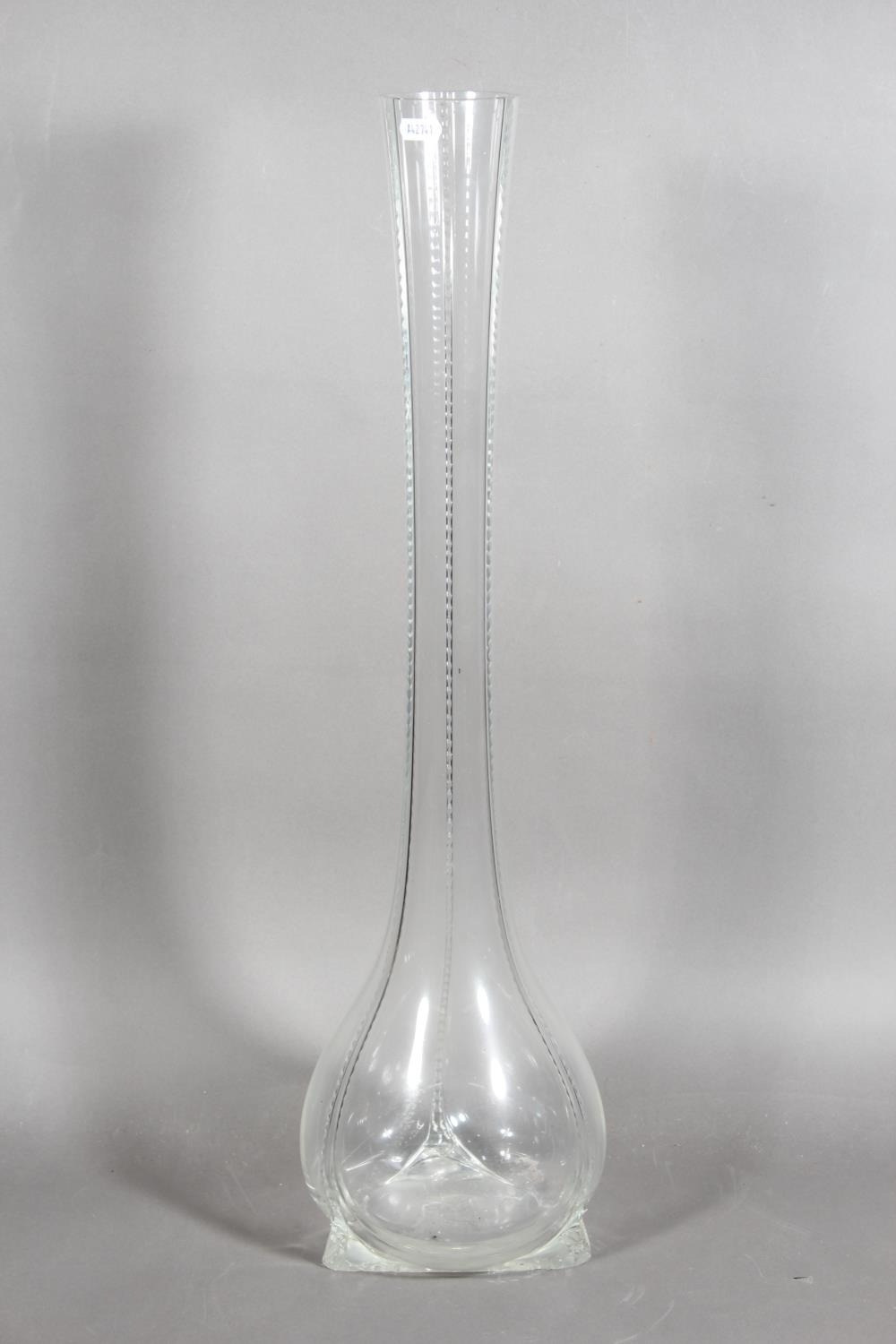 Glass bulbous vase with ribbed design.