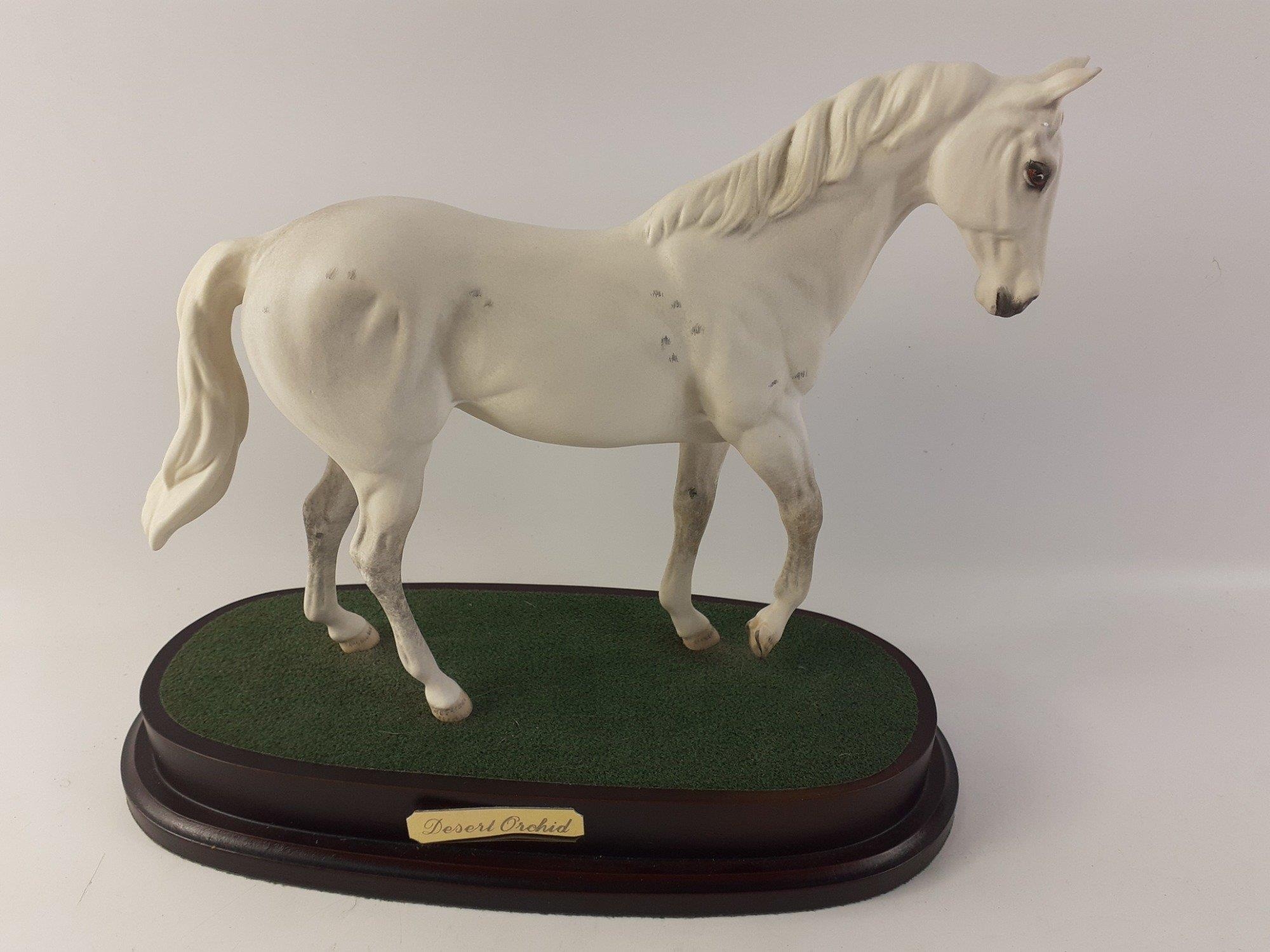 BESWICK RACE HORSE - DESERT ORCHID. A Connoisseur Model by Beswick England on a wooden plinth. 23cm high approx on plinth, a beautiful model in excellent condition.