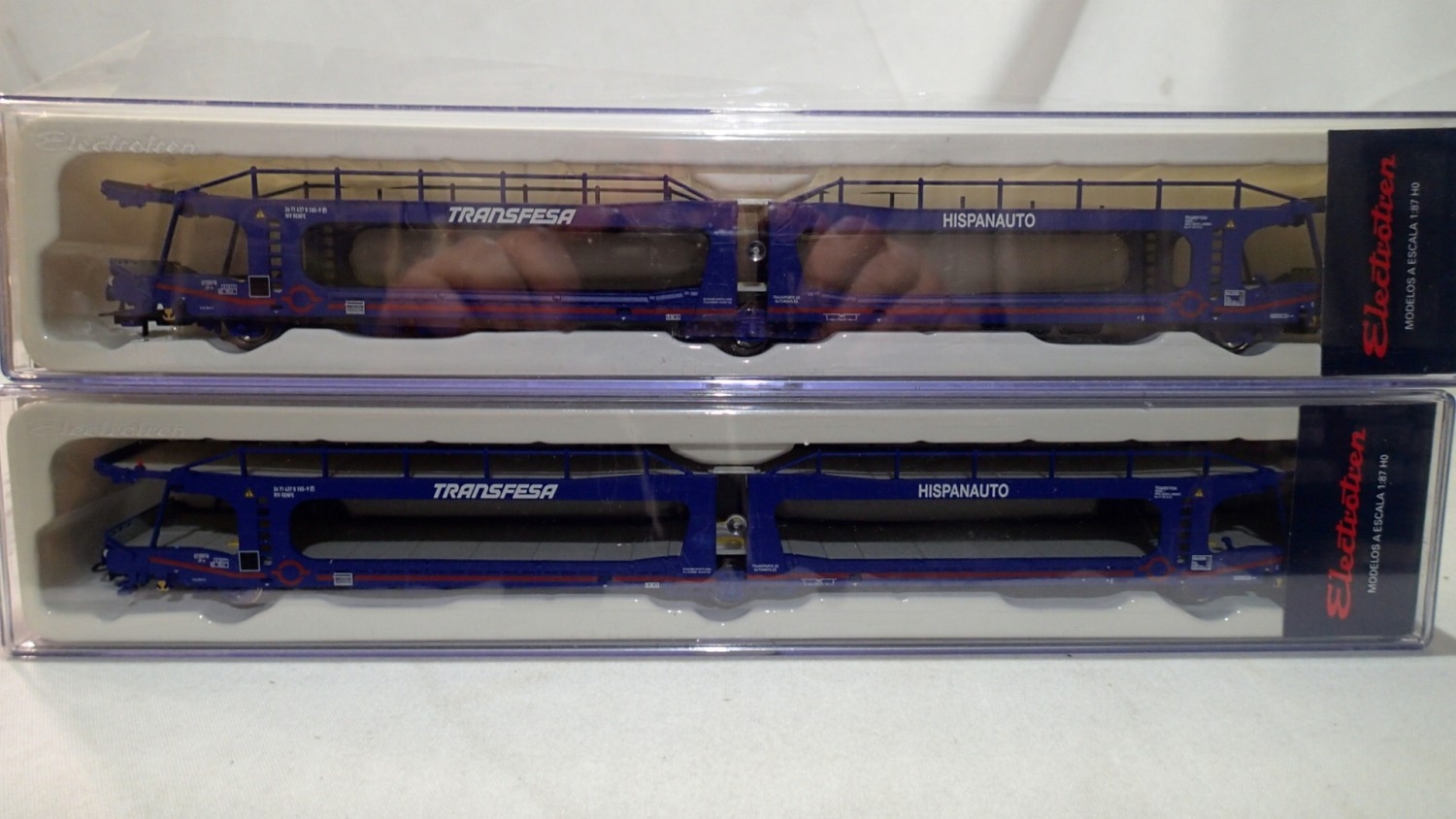 Ho Scale 2x Electrotren car transporters, 'Transfesa - Hispanauto' factory sealed. UK P&P Group 2 (£24+VAT for the first lot and £5+VAT for subsequent lots)