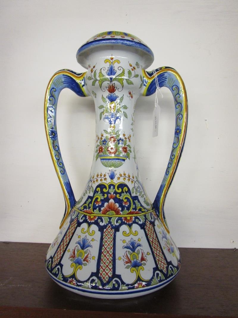 2 handled Majolica style vase