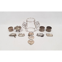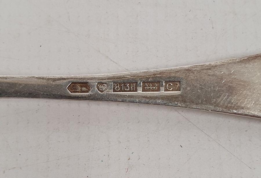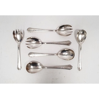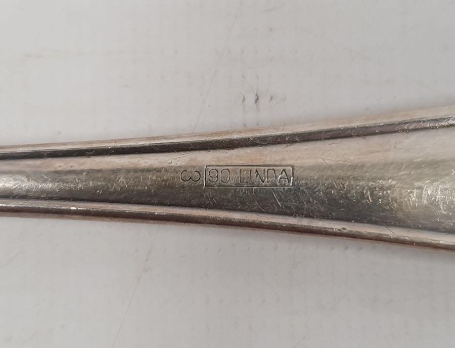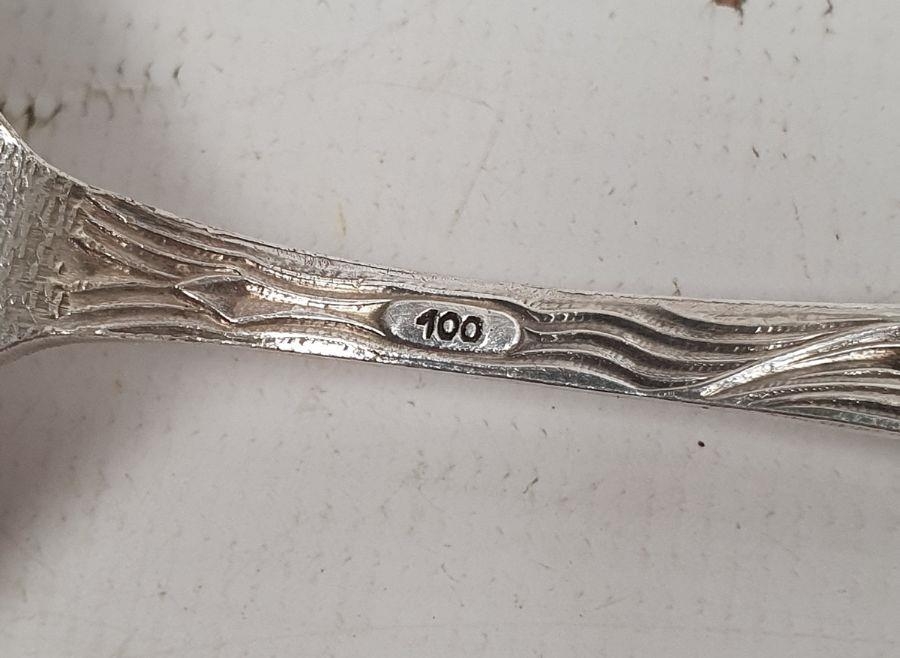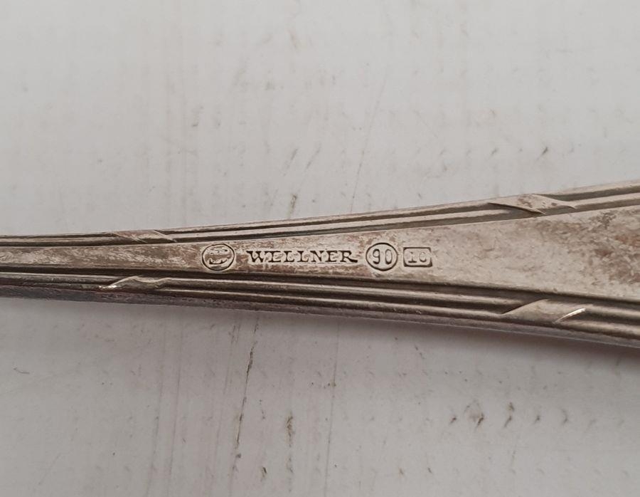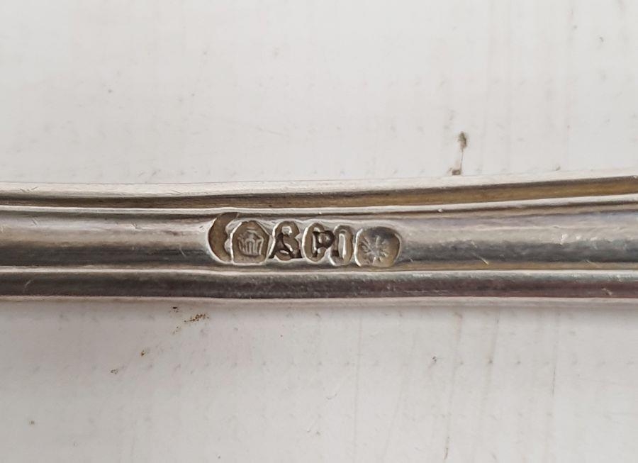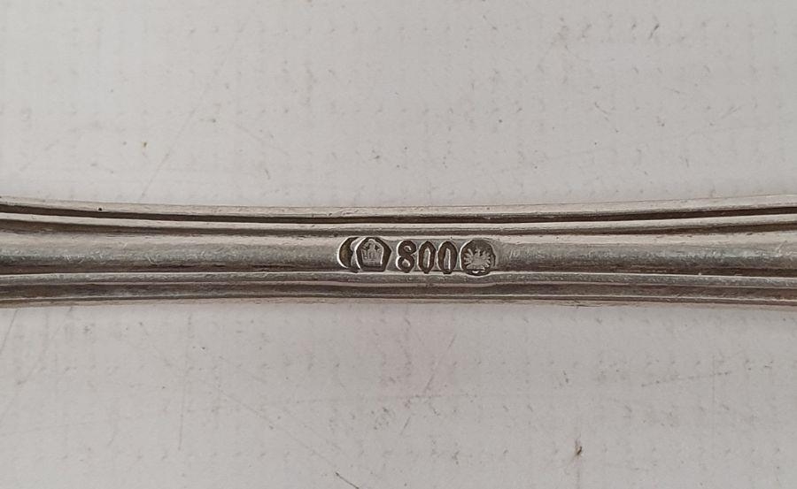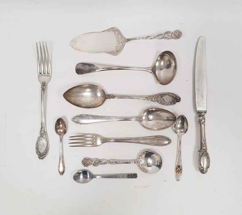 German silver fork, spoon and knife set, the knife silver-handled, foliate handles, initialled 'PC(?)', with crescent and crown mark and marked 800, the fork and spoon 4ozt approx. and various other foreign silver and silver-plated flatware