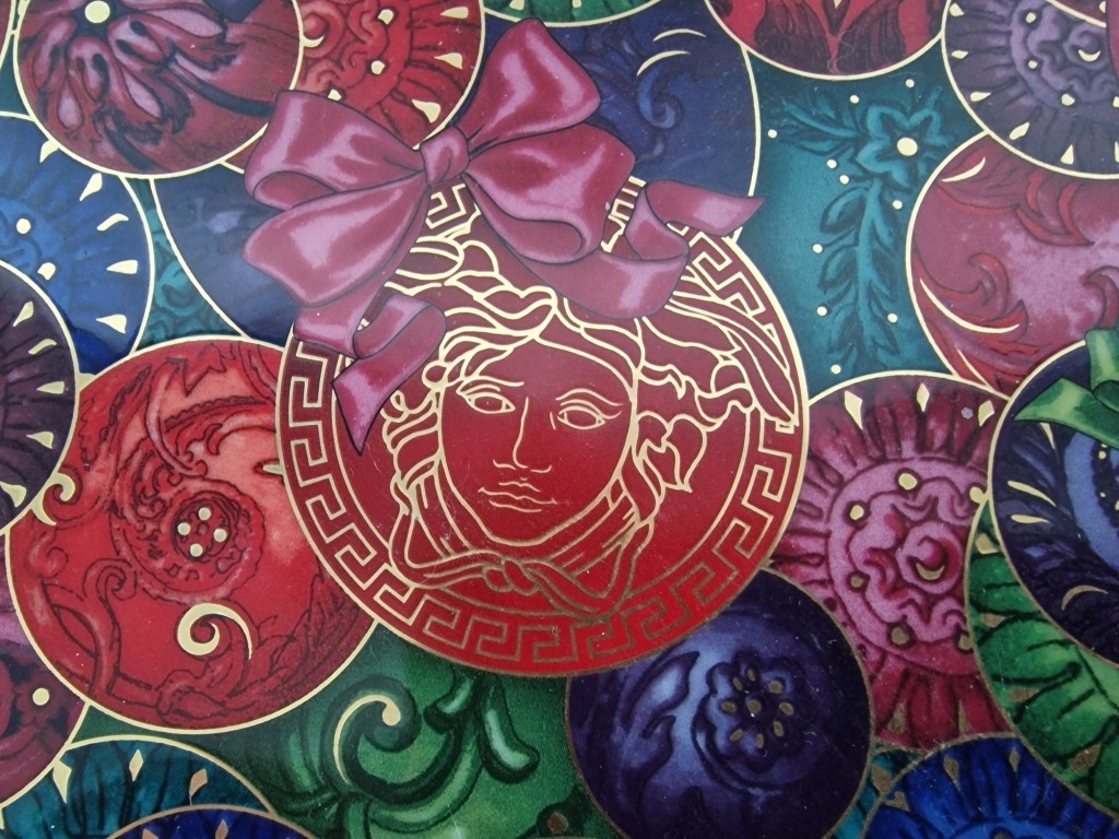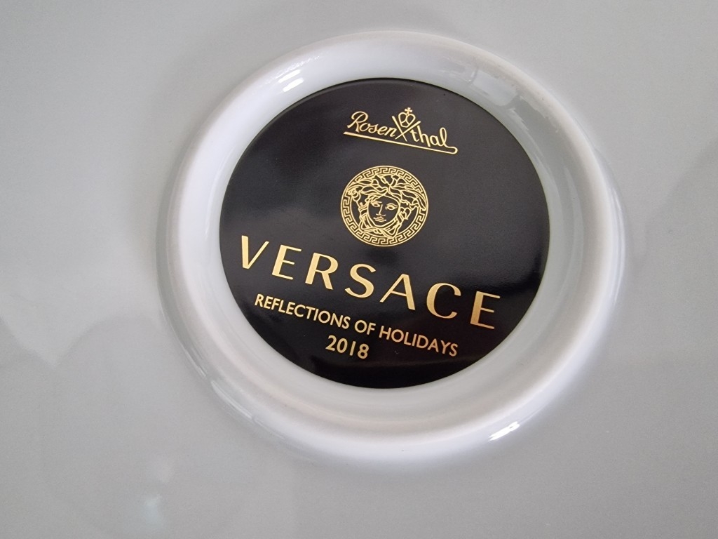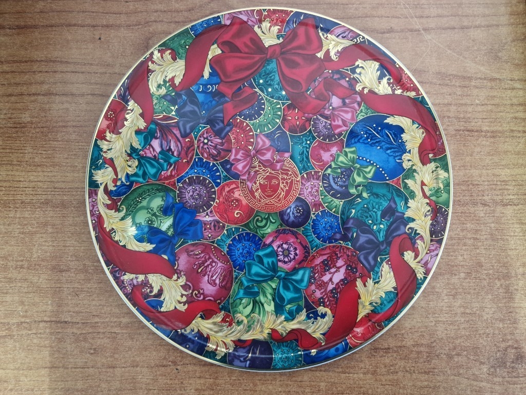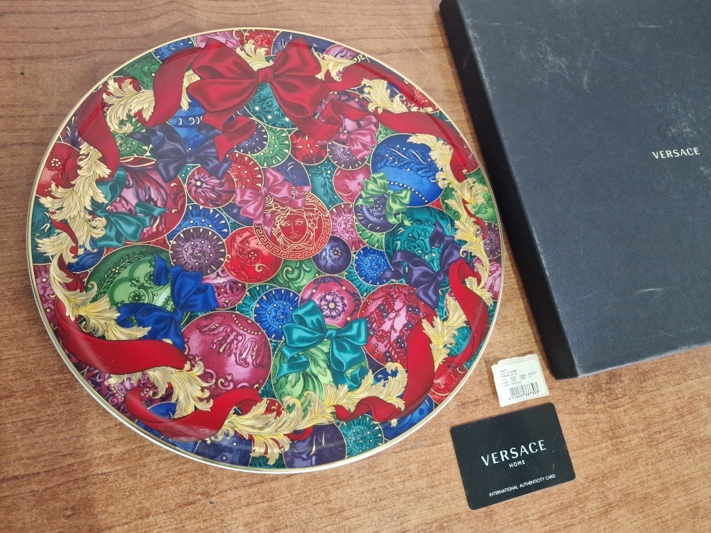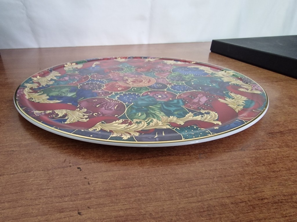 Rosenthal VERSACE 'Reflections of Holidays, 2018' Round Plate with Bright & Bold Pattern of Ribbons, Baubles, etc, in Original Box, (Approx. Ø: 32.5cm)
