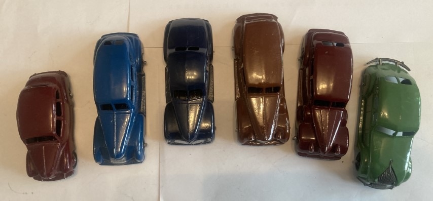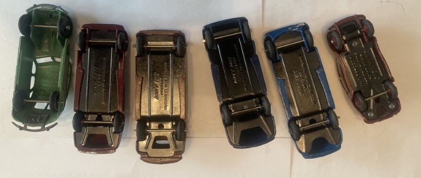 A collection of six early Dinky Meccano cars. Austin Devon, Studebaker State Commander, Chrysler Roya, Packard, Buick & one other. All circa 1946. Unboxed, condition as seen