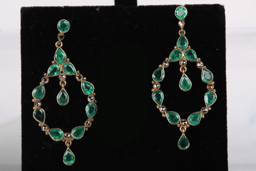 18k gold, translucent, finely-cut emerald chandelier earrings. JEWELLERY Wednesday 12th March 2025 Approximate Time 14:56:33
