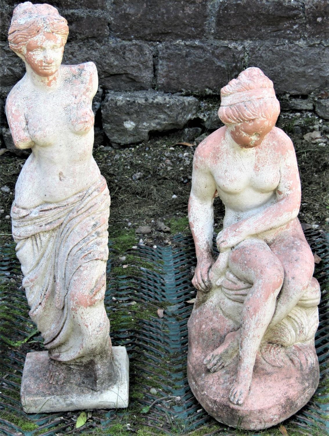 A small reclaimed garden ornament/statue in the form of Venus, together with one other