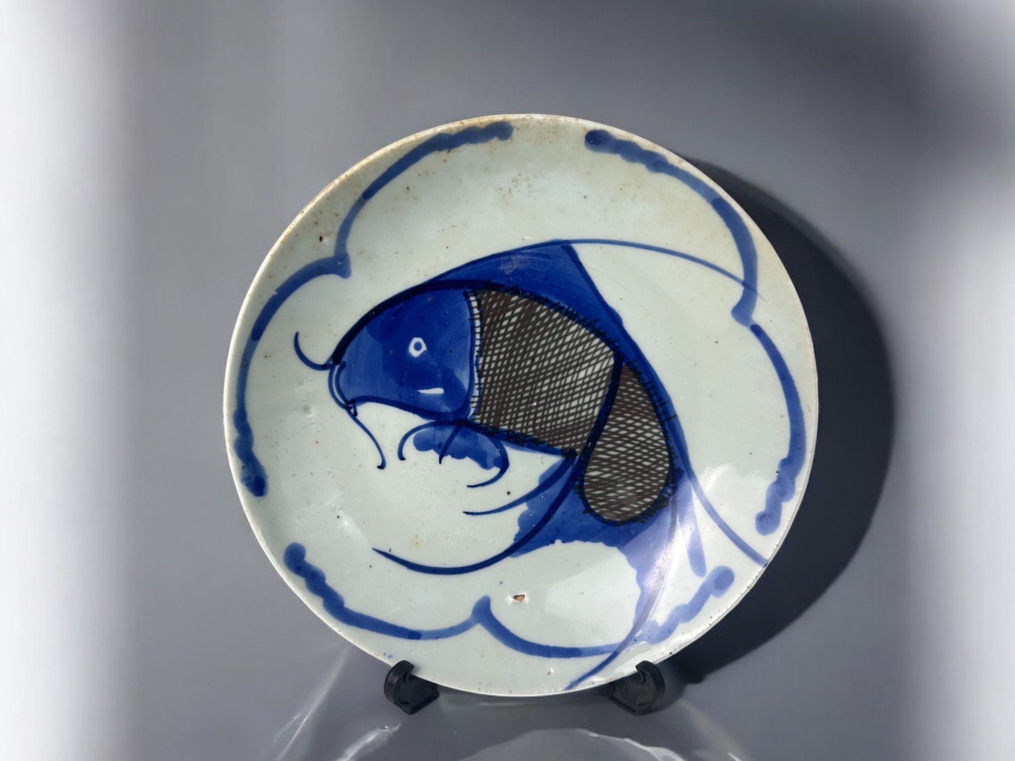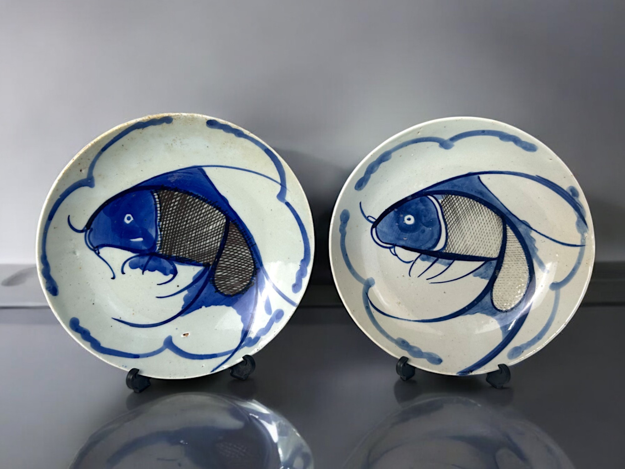 A pair of Chinese blue & white 'Koi Carp' plates.