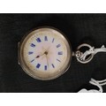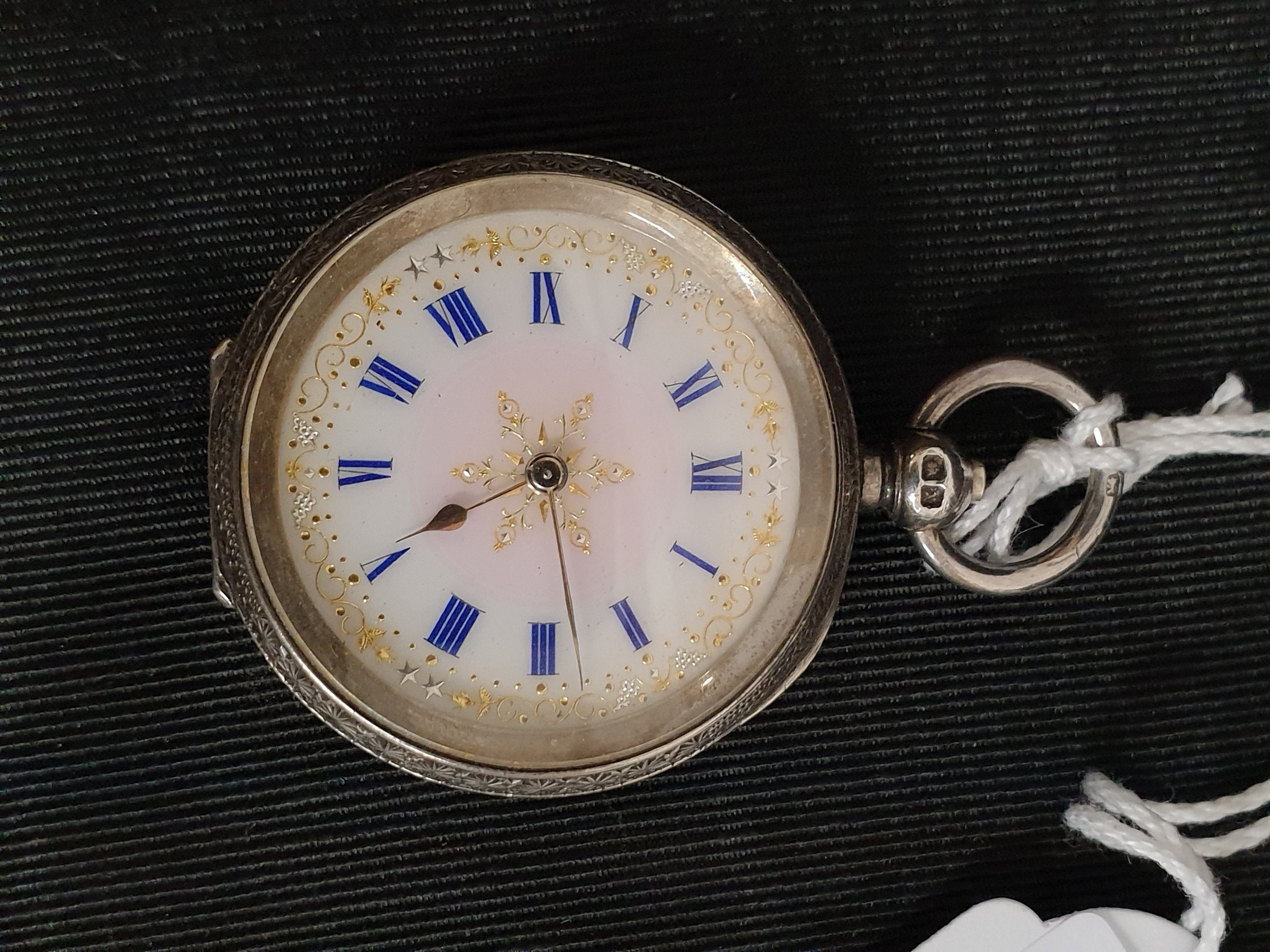 Ladies Silver Hallmarked Pocket Watch Beautiful Face th Pink AND White Enamelling Gilded Border Cobaly Blue Numbers Stunning Little Watch